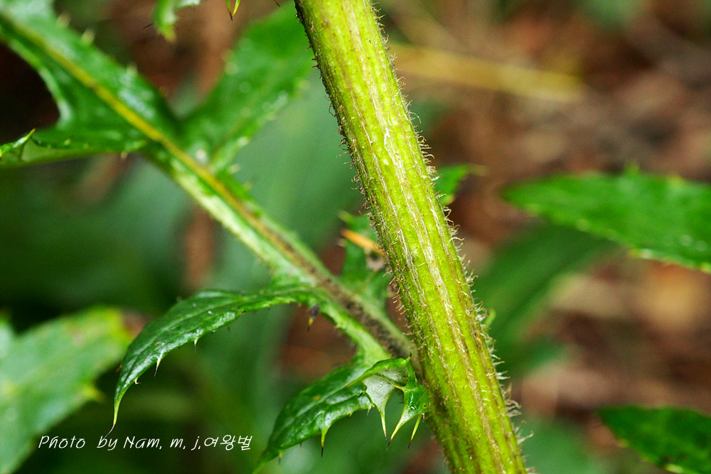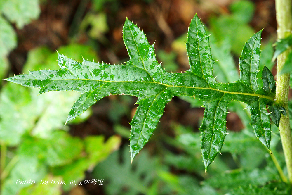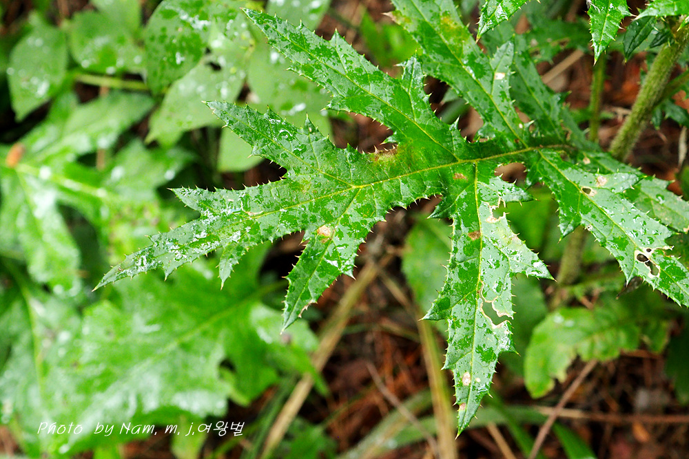 큰절굿대 : 잎이 두껍고 잎의 결각이 매우 깊고 열편 끝의 가시가 크고 억세다.