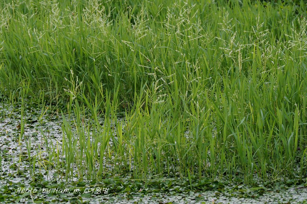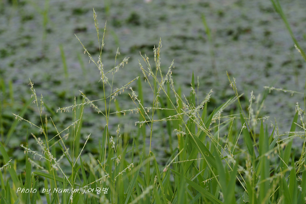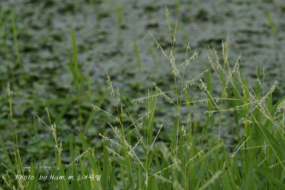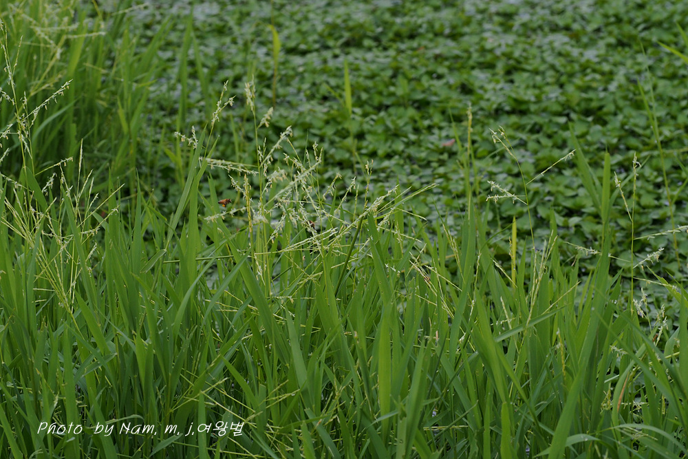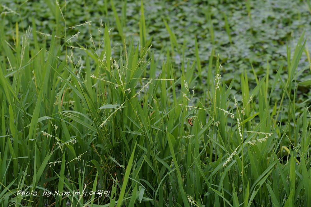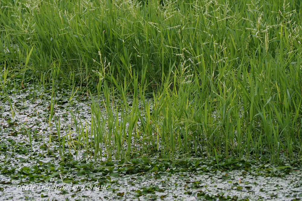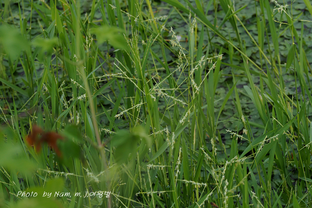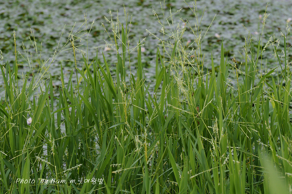 작은 연못 가장자리에 나도겨풀 꽃이 한창이다.