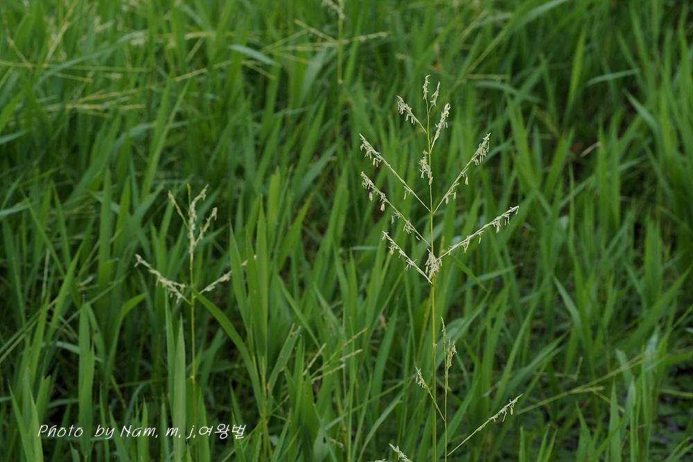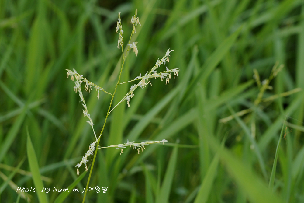 나도겨풀 Leersia japonica : 수술꽃밥 6개, 화서 가지 아래 부분부터 소수가 달린다.