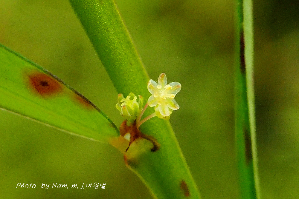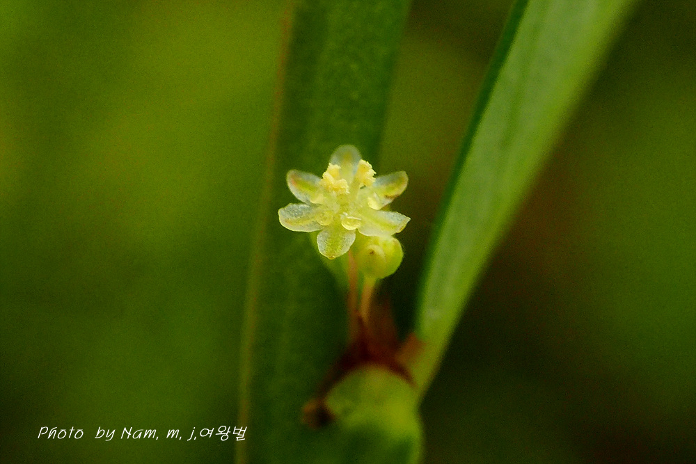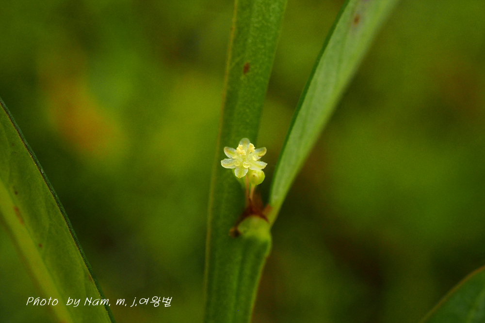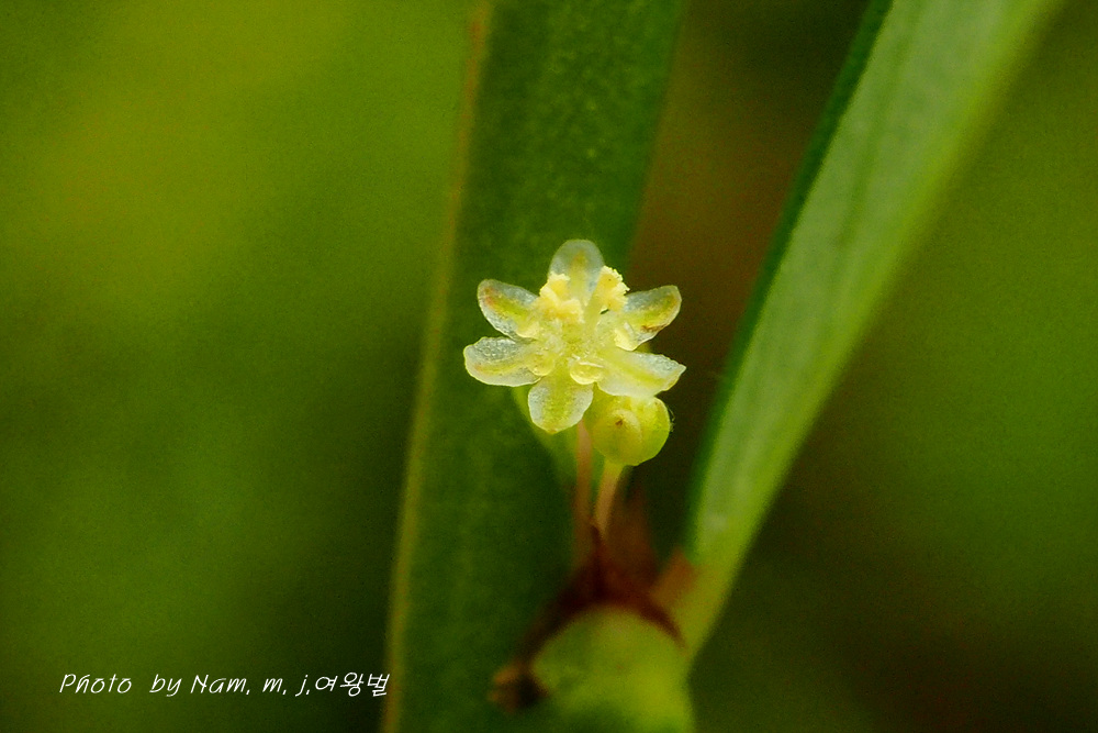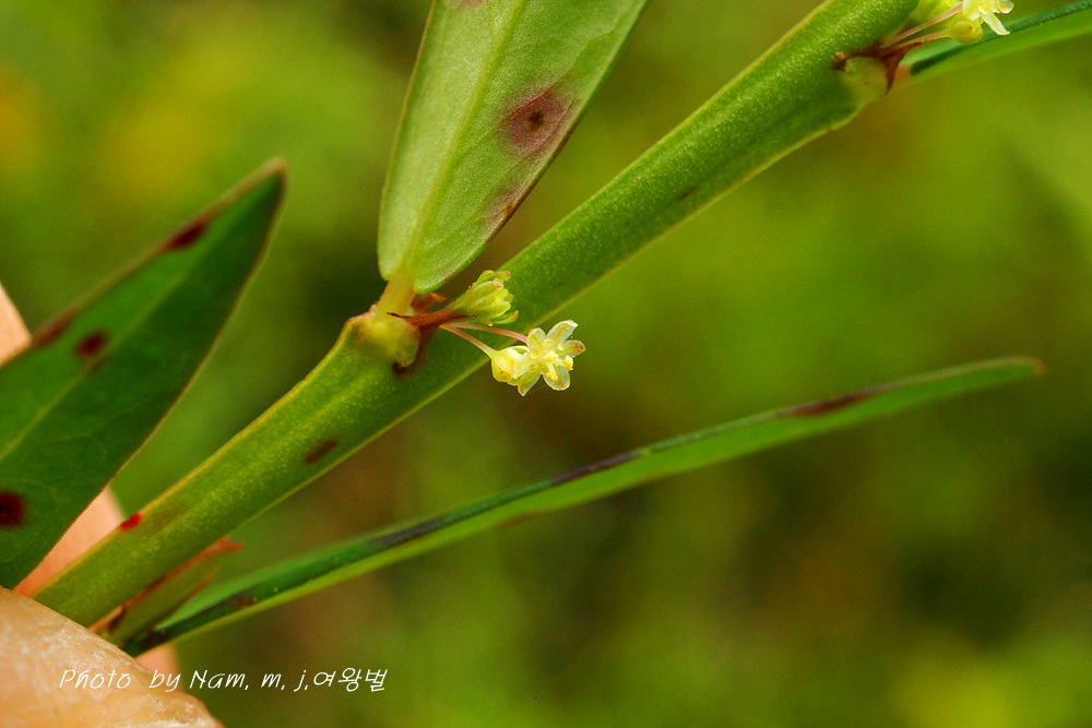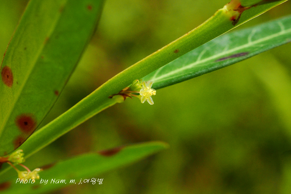 잎겨드랑이에 달린 좁쌀 크기의 1개의 암꽃과 1-2개의 수꽃이 접사렌즈 없이는 촬영이 용이하지 않다.