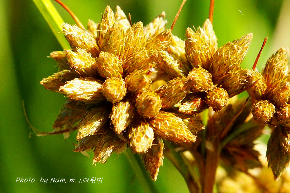방울고랭이 ; 소수 3~7개 열매가 구형에 가까운 타원형 이삭이 아래로 늘어진다. 화서 가지가 까끌거린다 개화기 8~9월