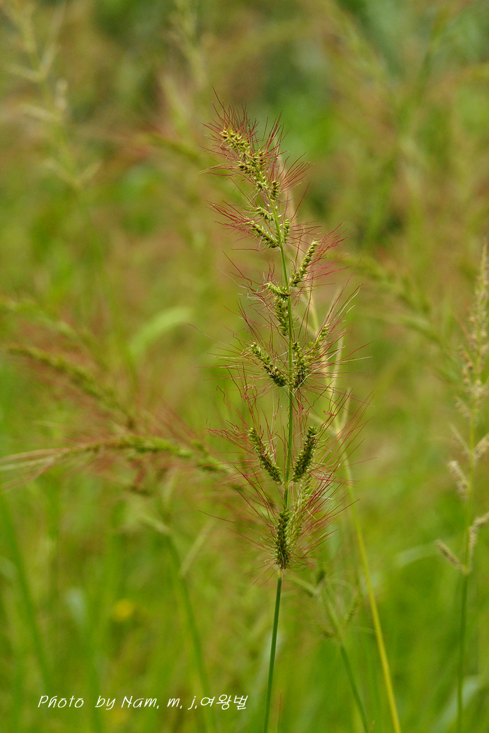 소수가 조밀하게 달리고 화서가 자색을 띠며, 긴 까락으로 돌피에서 분리된 녀석이다.