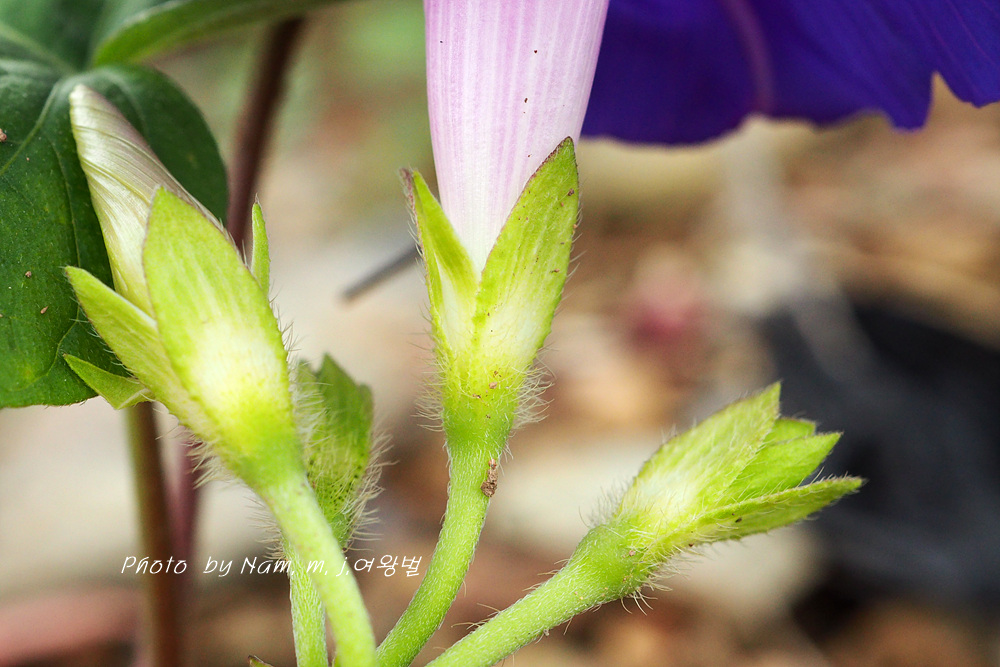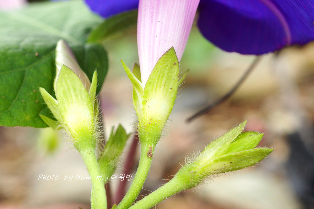이 녀석은 나팔꽃 과 잎 모양과 꽃받침 모양이 서로 다르다