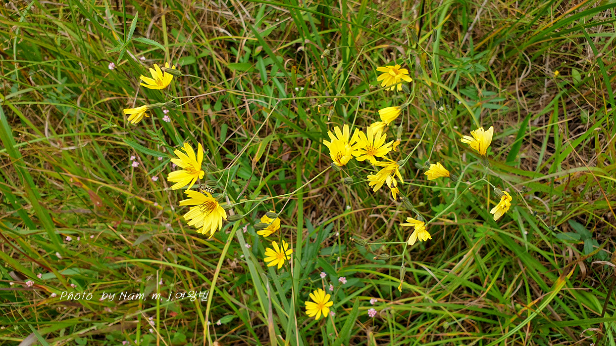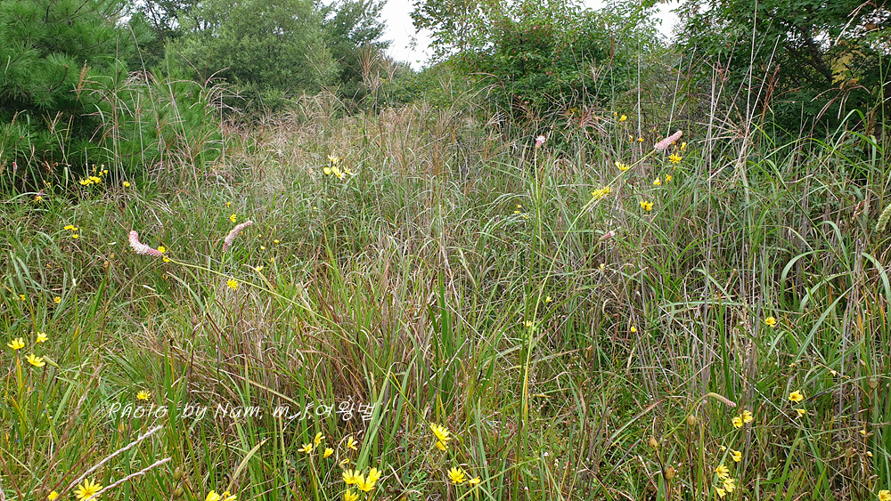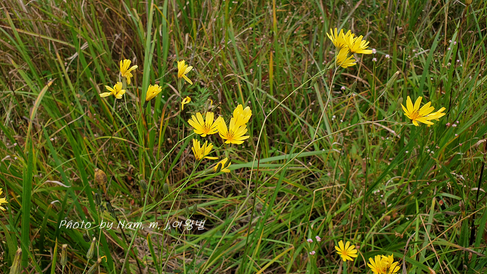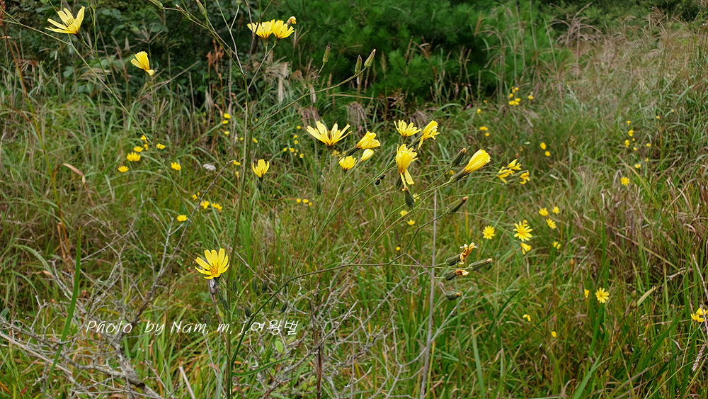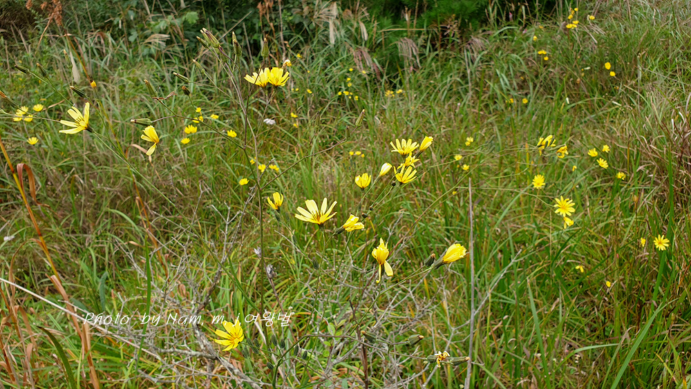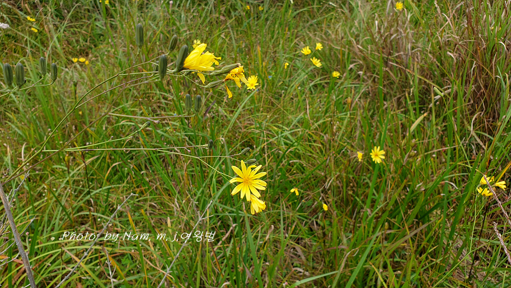 이 녀석은 억새 같은 긴 잎에 국화과 꽃을 피우고 있어서 잎과 꽃이 상식적으로 매치가 되지 않는다.