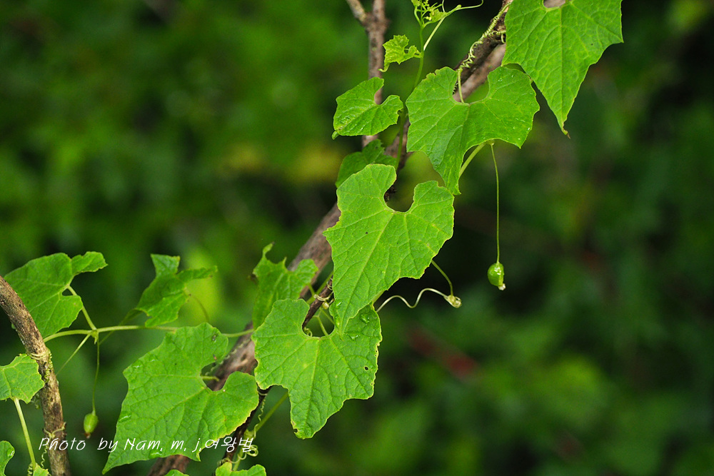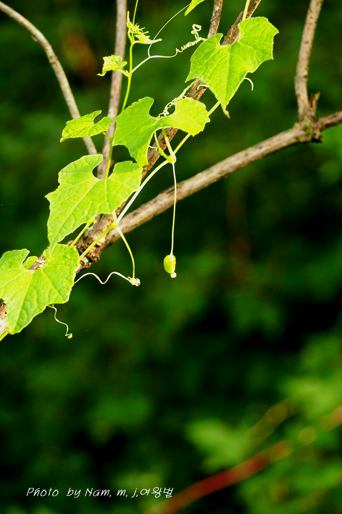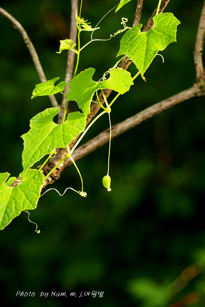 산지 숲 가장자리에 자라는 덩굴성 한해살이풀이다.