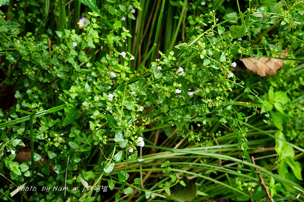 쪼꼬마한 잎새에 하얀 꽃이 드문드문 여기저기 달려 있는 모습이 귀여운 녀석이다.