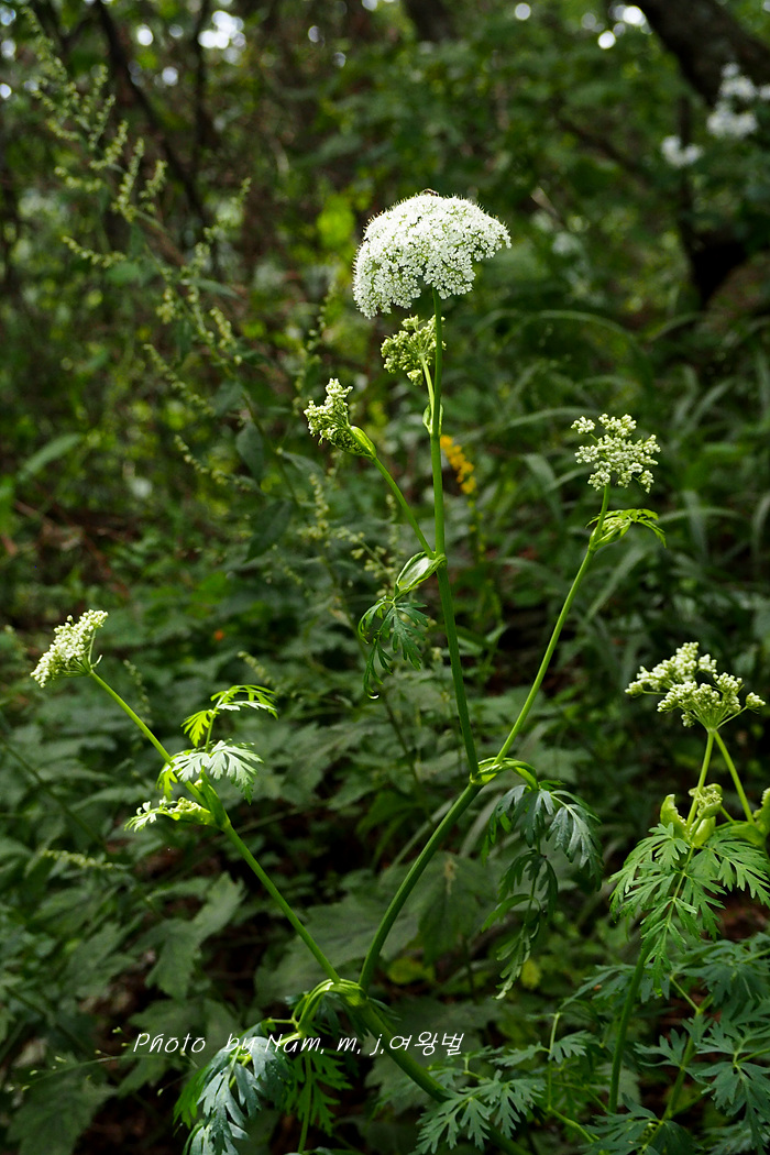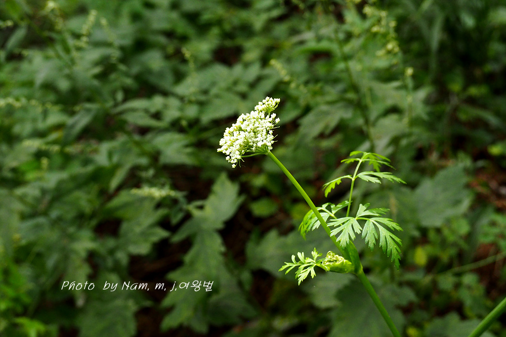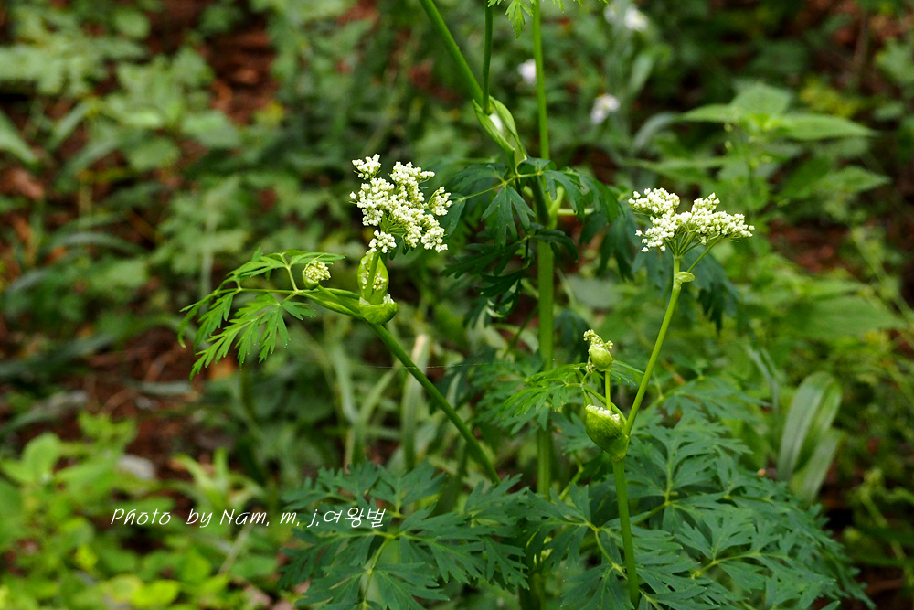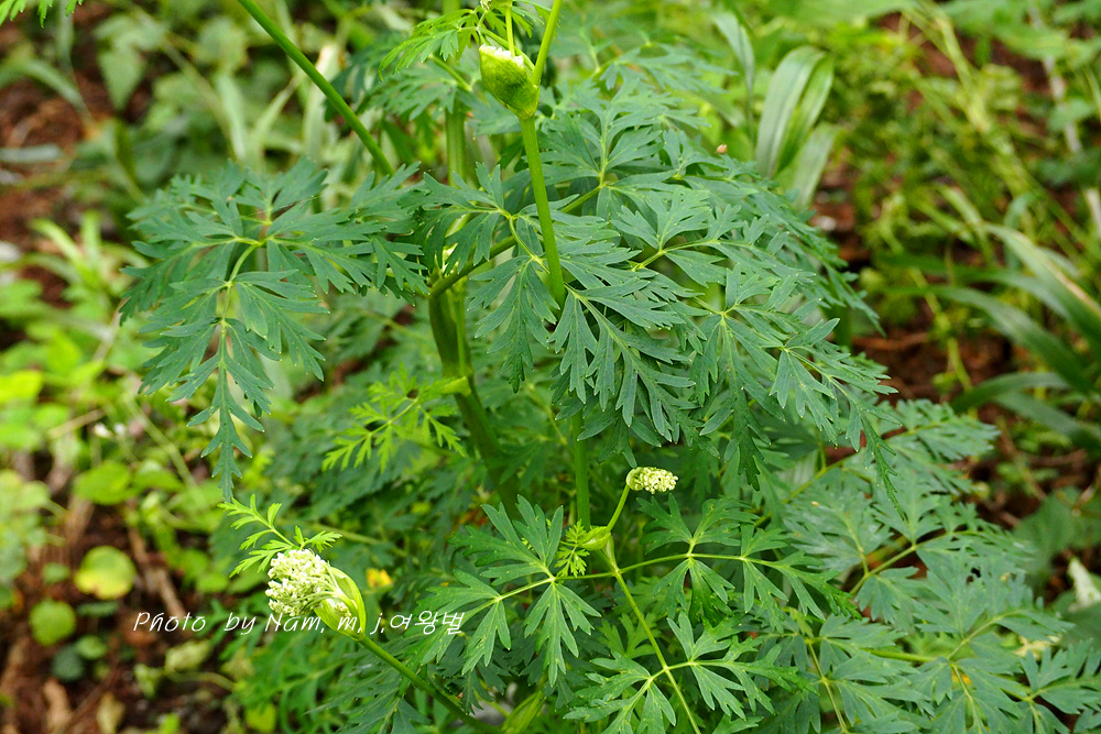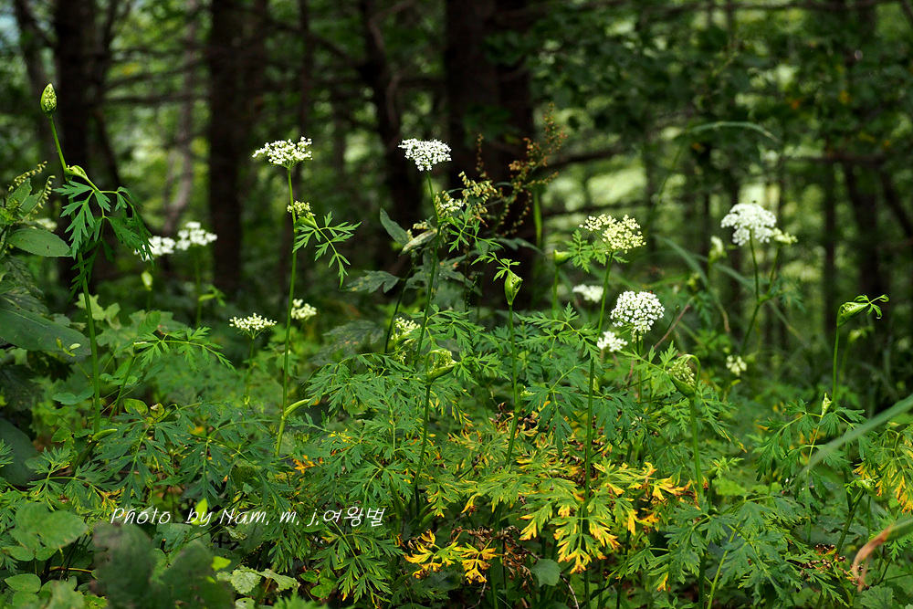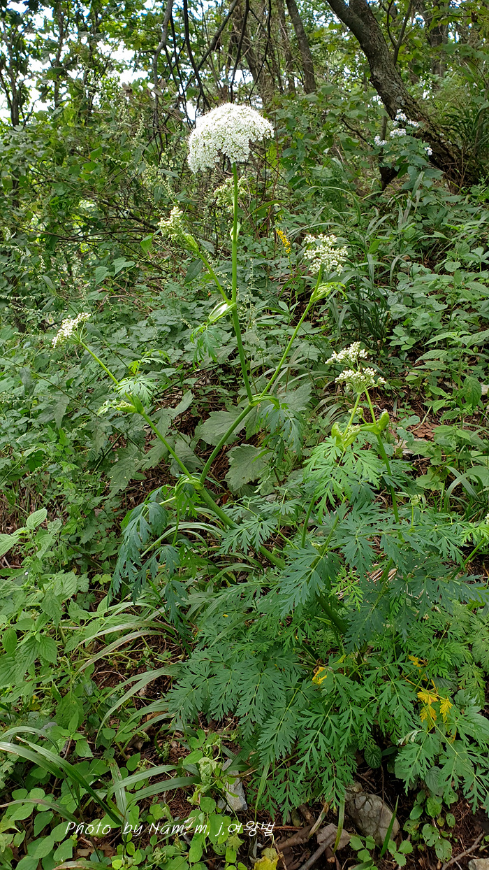 가끔 들르는 숲에 왜방풍으로 알고 있던 이 녀석은 가는잎방풍처럼 잎이 매우 가늘게 갈라져 있어서