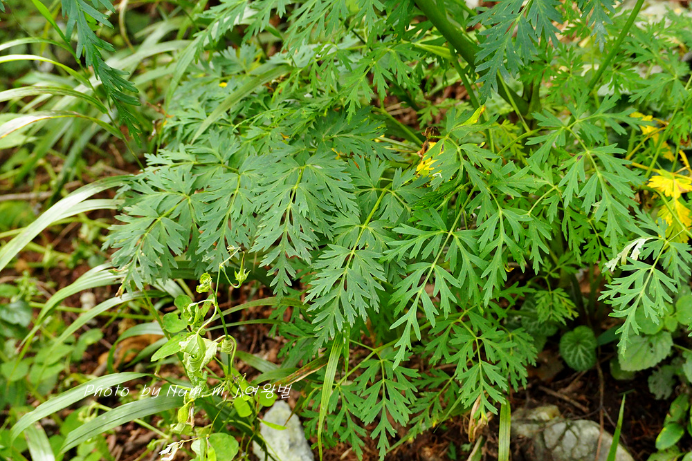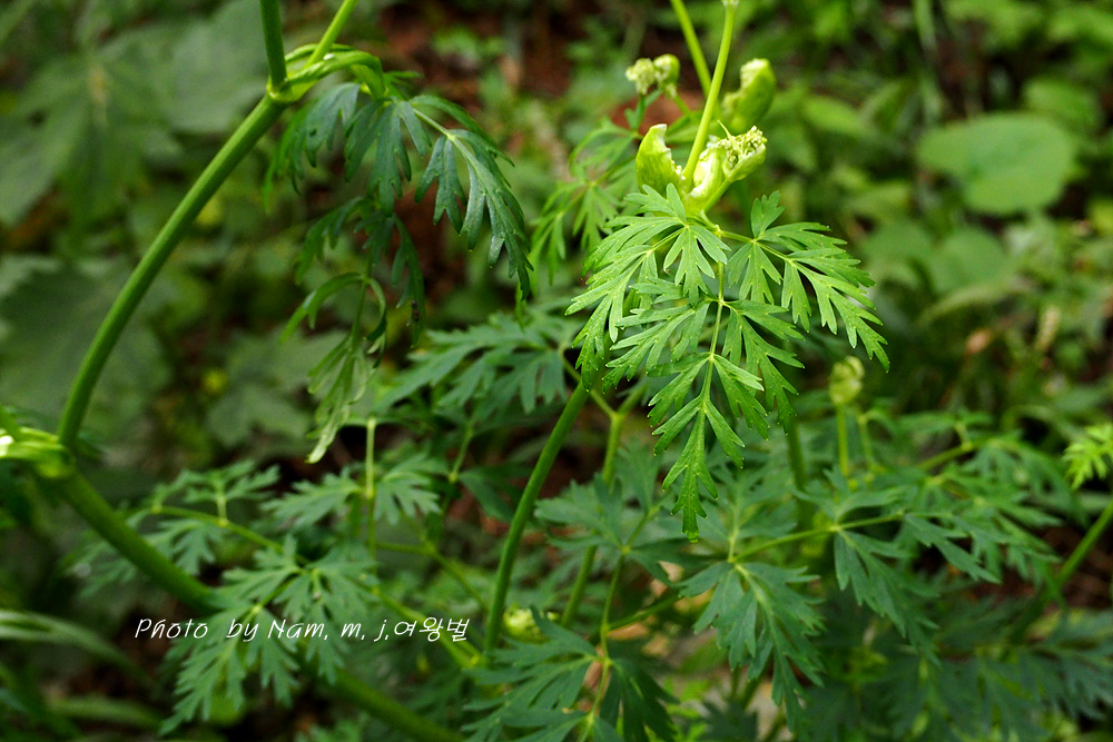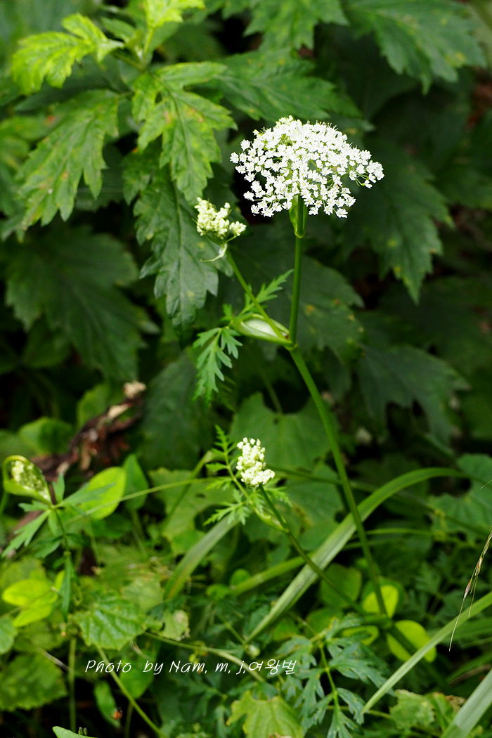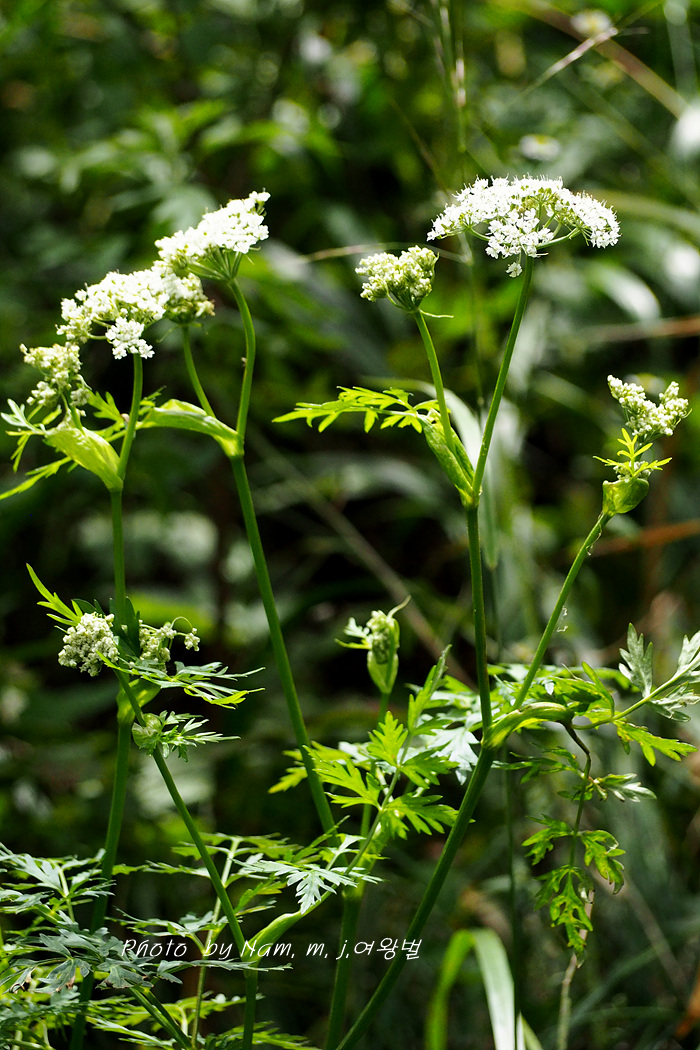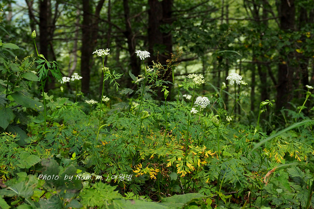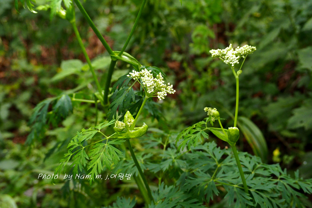 가끔 들르는 숲에 왜방풍으로 알고 있던 이 녀석은 가는잎방풍처럼 잎이 매우 가늘게 갈라져 있어서