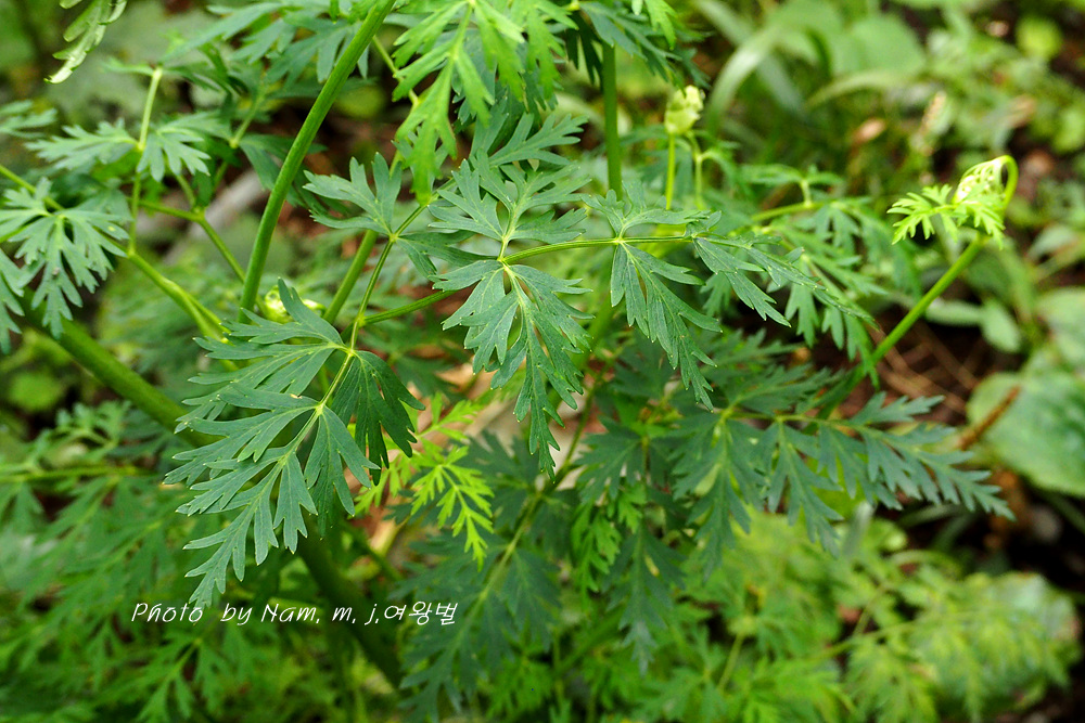 그렇다~!! 이 녀석 가늘게 세열한 2회 갈라진 깃꼴잎과 발달된 잎집은 참고본 잎이었다.