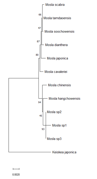 물론 근연종들과 DNA 염기서열 분석도 당연히 하였는데 다도해산들깨는 가는잎산들깨와 별개로 유집되어
