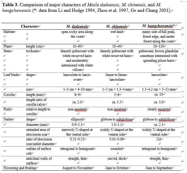 다도해산들깨, 가는잎산들깨, 모슬라 항초엔시스(중국고유종) 형태 비교