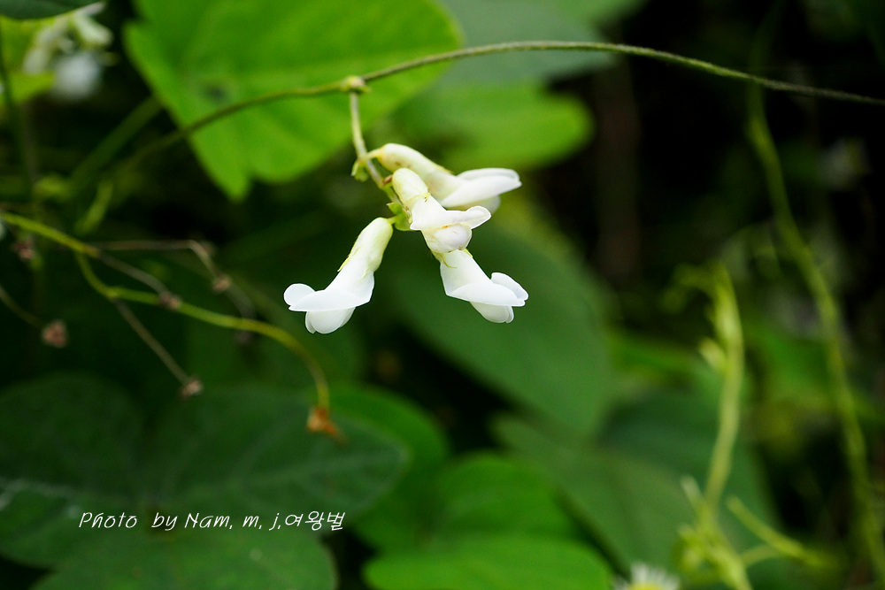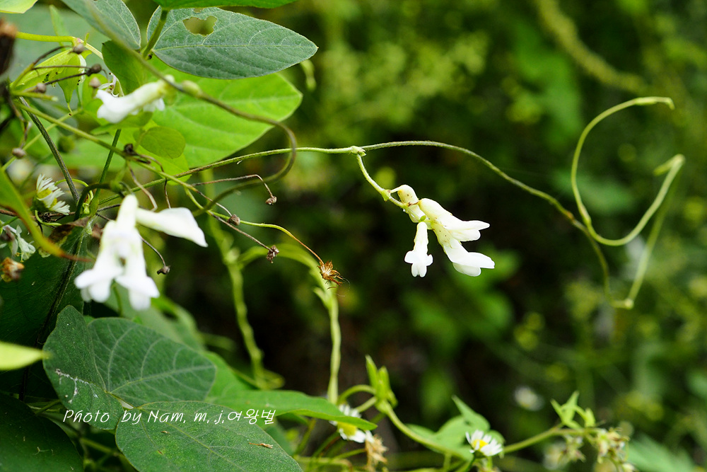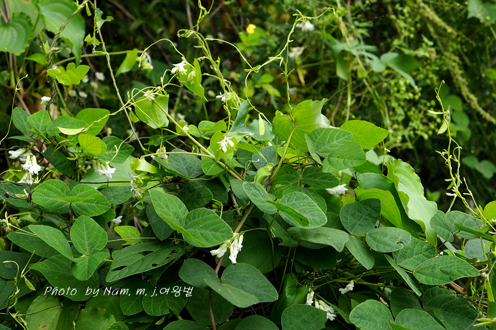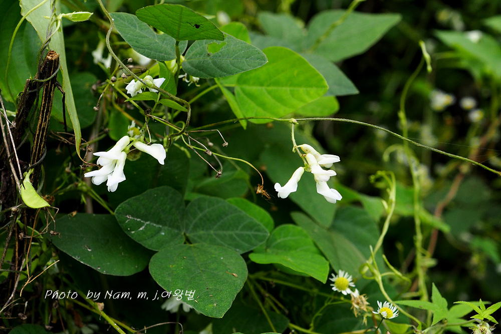 주변 풀 숲을 살피는데 하얀 코고무신을 조롱조롱 달고 있는 새콩 덩굴이 카메라를 들이대게 한다.