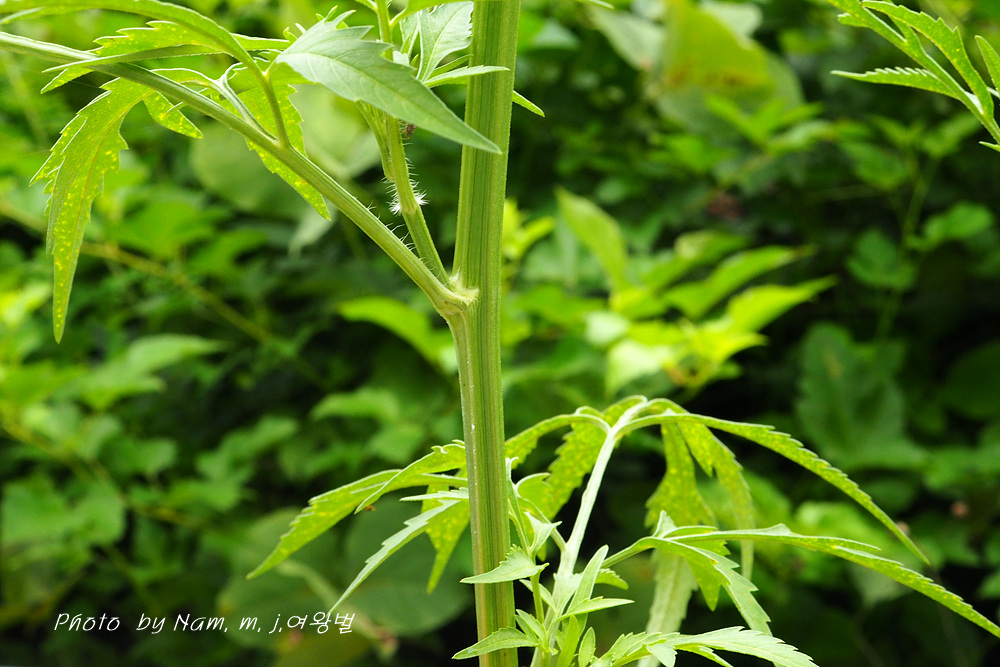 잎은 까치발처럼 매우 가늘게 갈라지고 혀꽃이 있거나 없으며