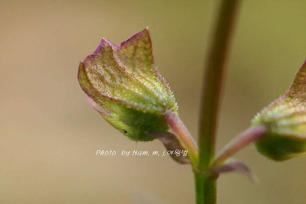 꽃받침 위쪽 열편의 톱니가 얕게 갈라지고 둔하다