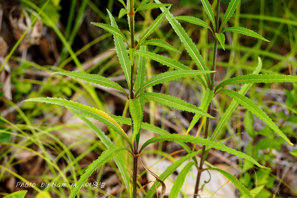 화반에 털이 없고 잎은 좁은 피침형 내지 선형이며 무모인 특징이 있다.