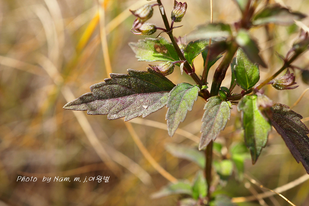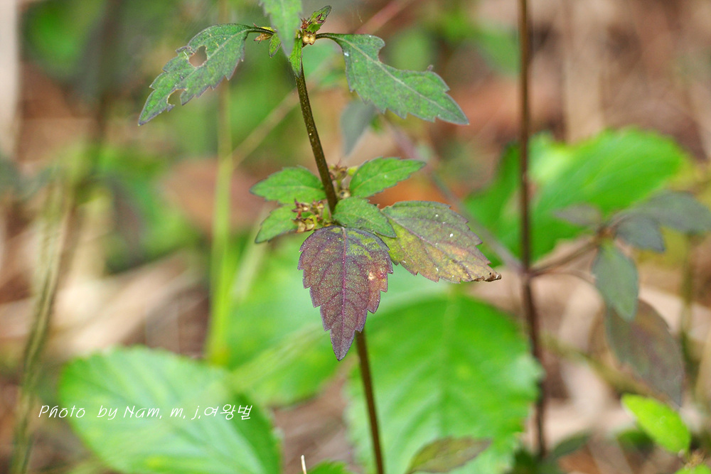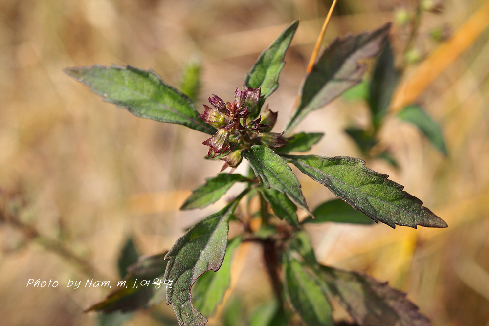 | 들깨풀 Mosla punctulata (J. F. Gmel.) Nakai | 위쪽 열편의 톱니가 깊게 갈라지고 끝이 뾰족하다. 화서에 퍼진 털이 있다 |