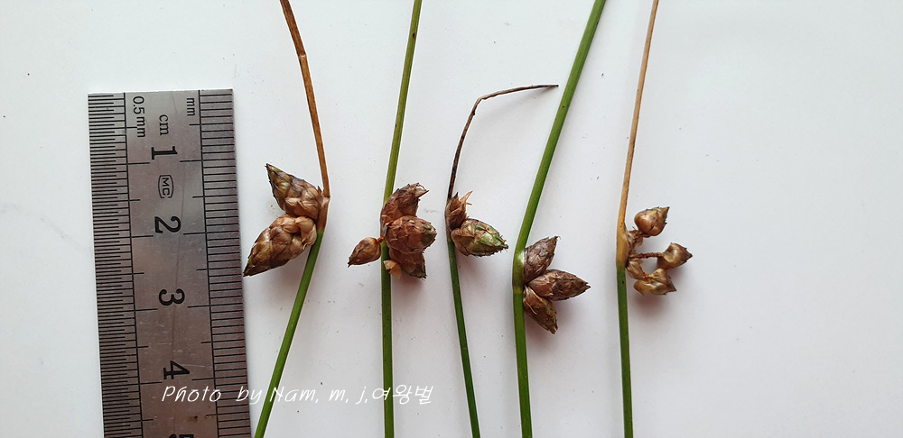 올챙이고랭이 : 줄기 굵이가 1.5mm 이상, 소수4~9개, 타원형, 원주형, 암술머리가 2갈래, 수과 편철형
