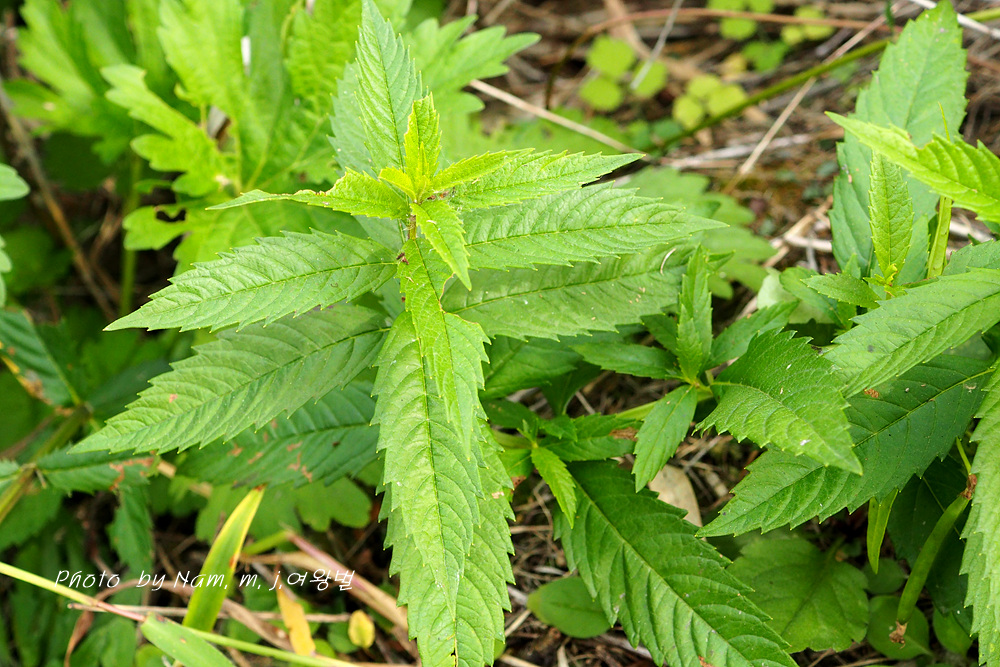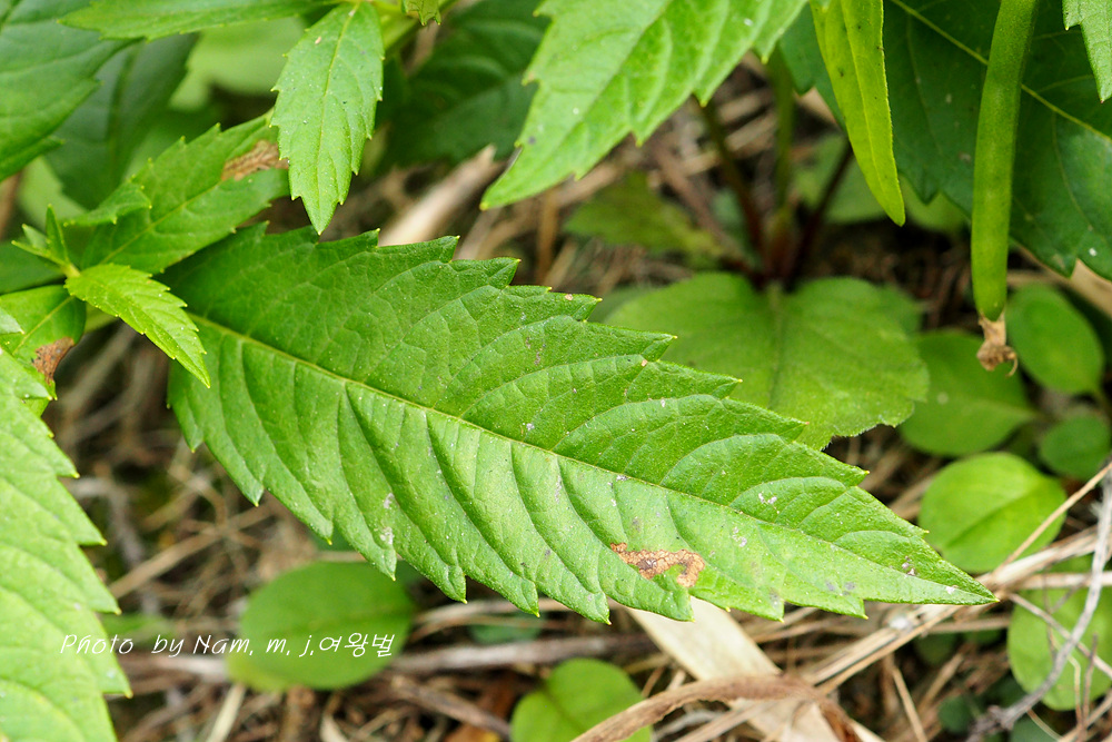 산쉽싸리에 비하여 거치가 크고 억센 느낌으로 엽질도 더 두텁다.