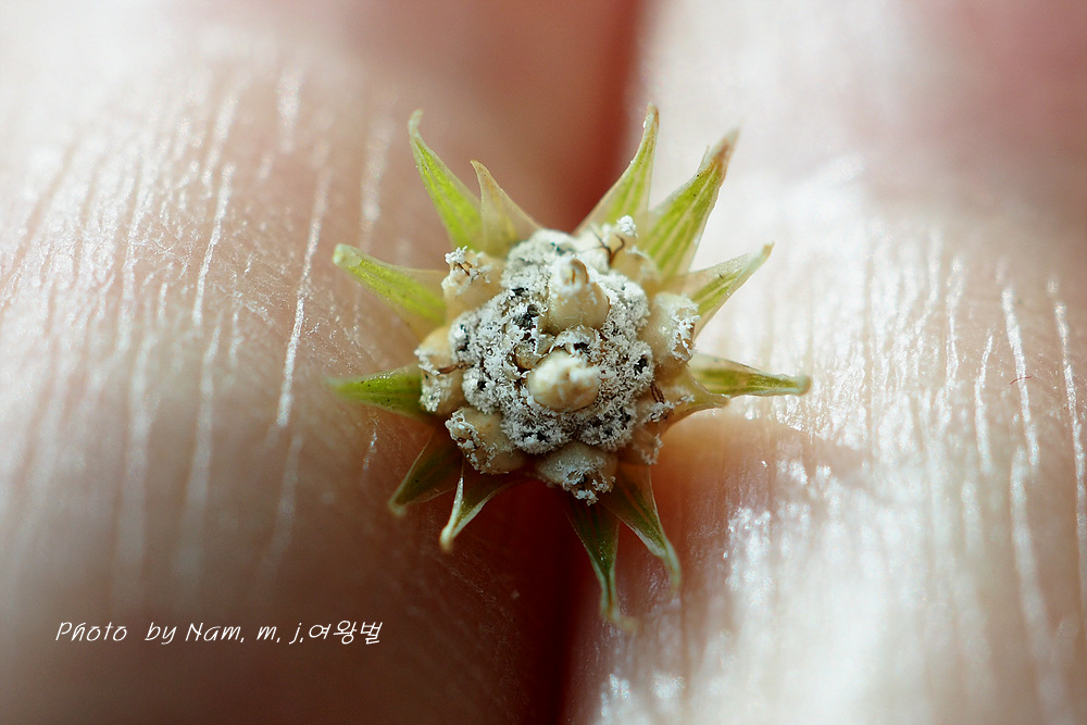 접사를 해보면 두화의 암꽃 포 윗부분과 꽃받침 윗가장자리에 털이 밀생한다.