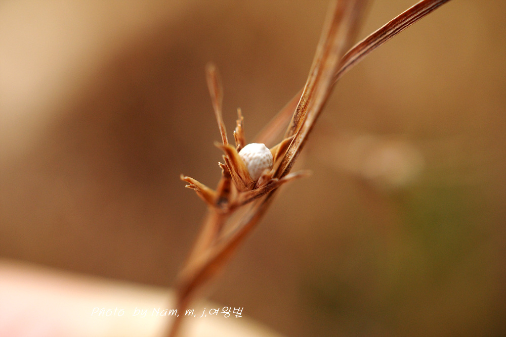 햐얗게 익은 종자가 바글거리기에 종자를 촬영하려고 카메라렌즈를 통하여 보는데