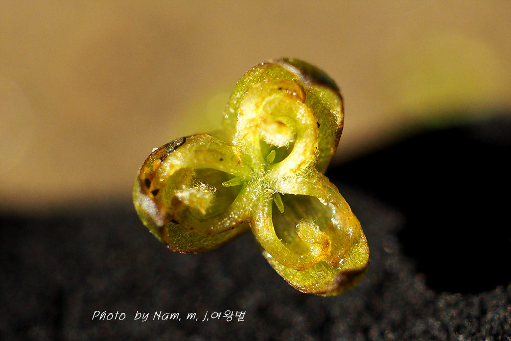 긴 꽃줄기 끝에 달린 암꽃은 수정이 끝나면 꽃줄기가 나사처럼 꼬불꼬불 말린다.