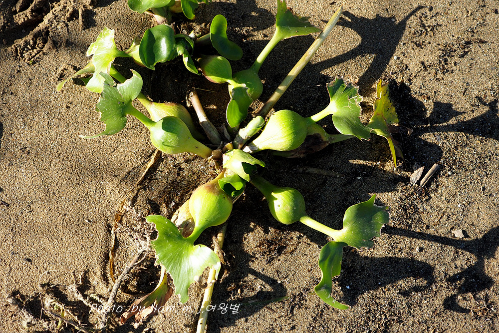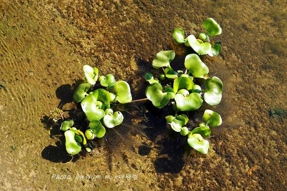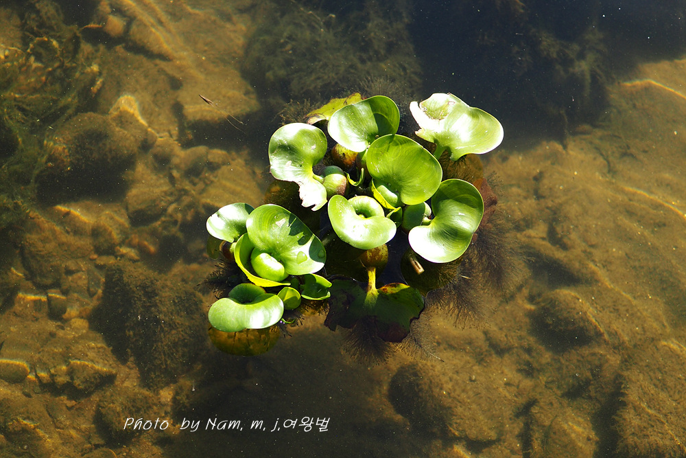연못이나 수조에 관상용 또는 수질정화용으로 식재하는데 잎자루 가운데가 부레처럼 부풀어서 공기주머니를 만들고 있다.