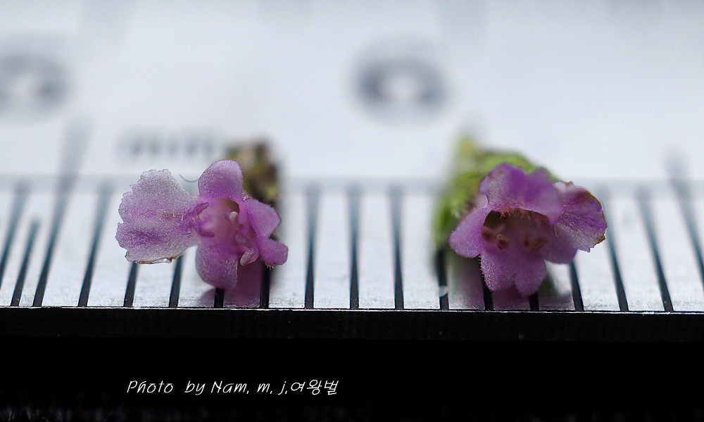 꽃의 크기를 촬영하느라고 현장에서 호작질