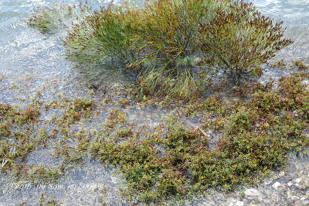 방석나물이 바닷물의 맛사지를 받으면서 찰랑거리고 있다.