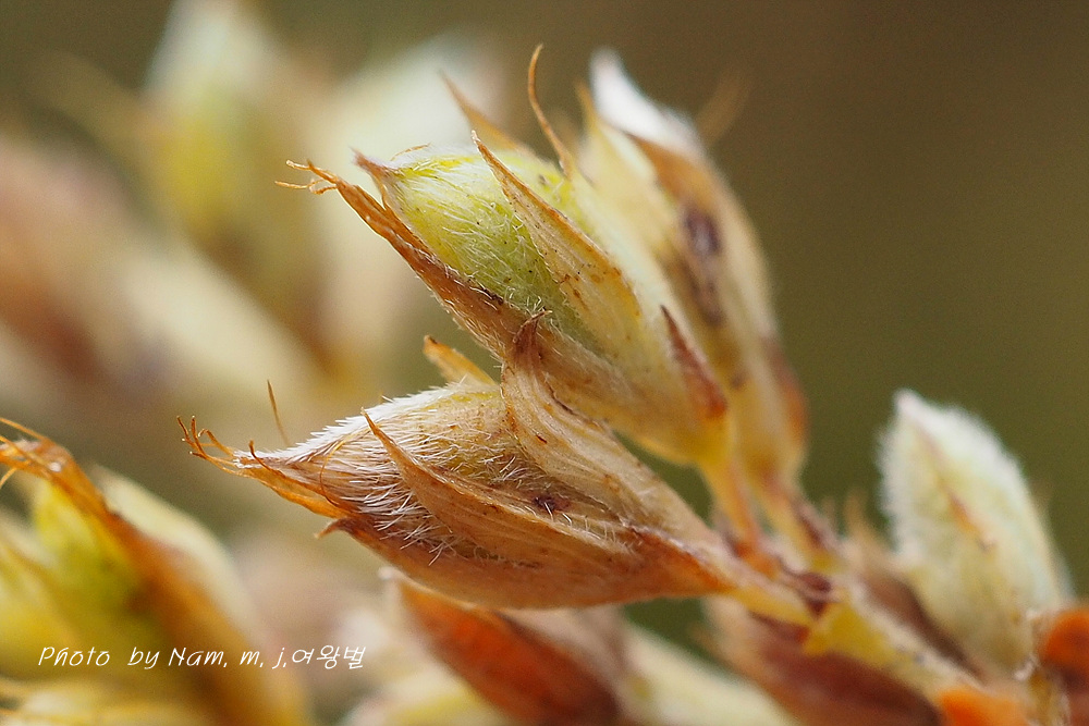 열매에 백색털이 많고 꽃받침 길이와 같거나 약간 더 길고 누운 백색털이 많다.
