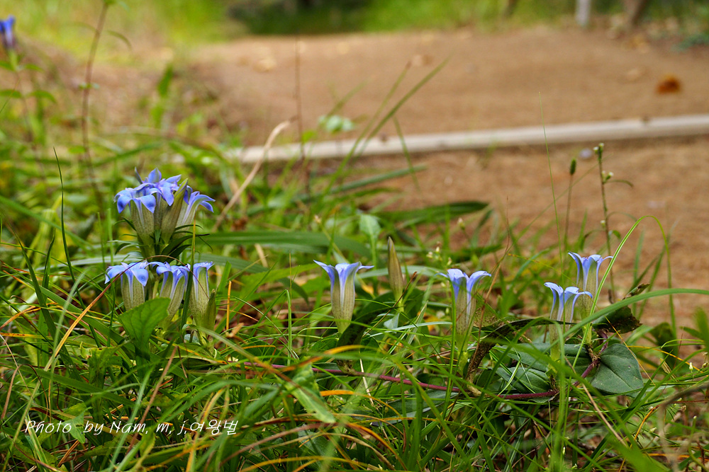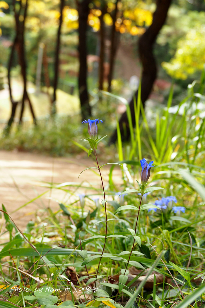 아파트 뒷산 산책로 주변에 용담이 파랗게 꽃을 피웠다.
