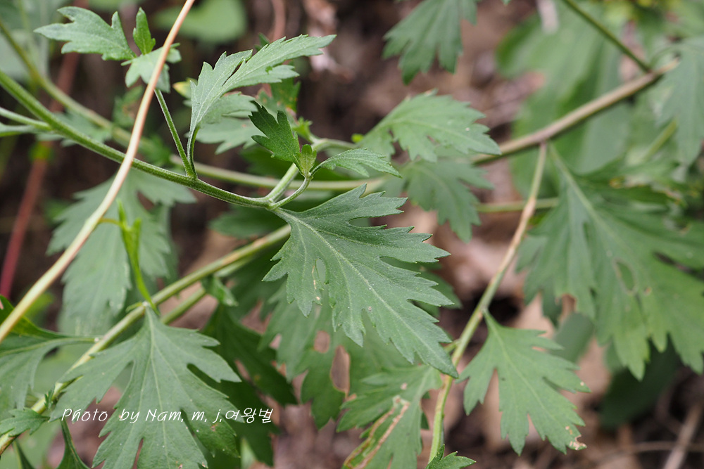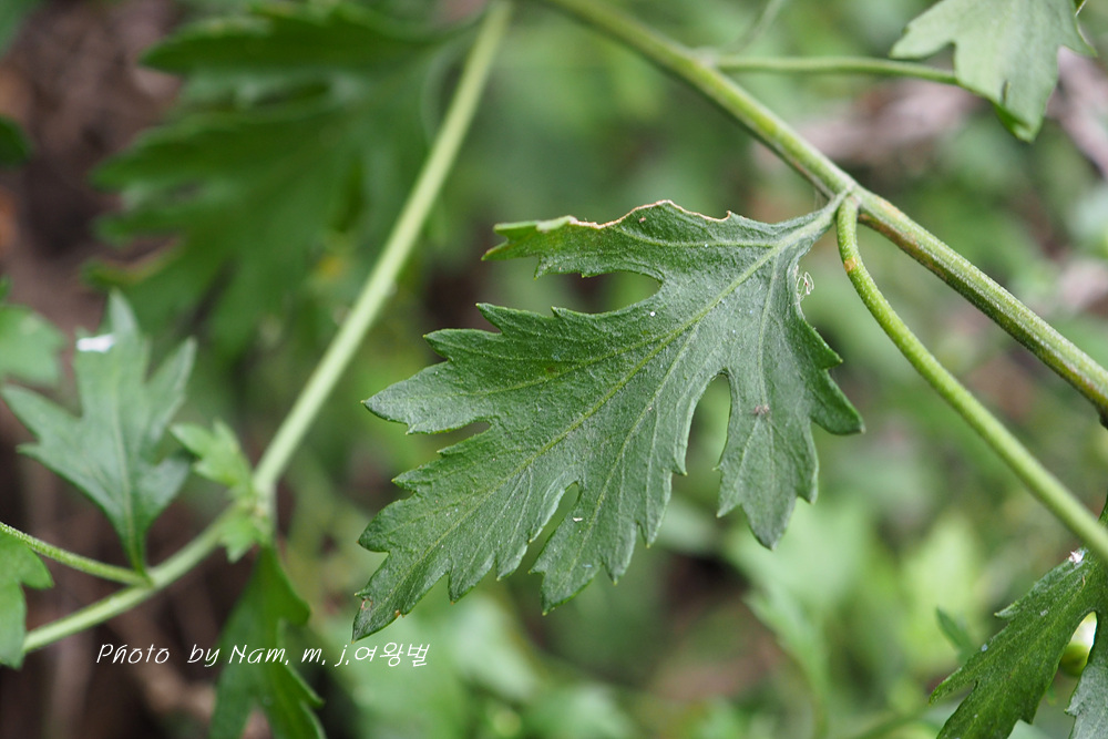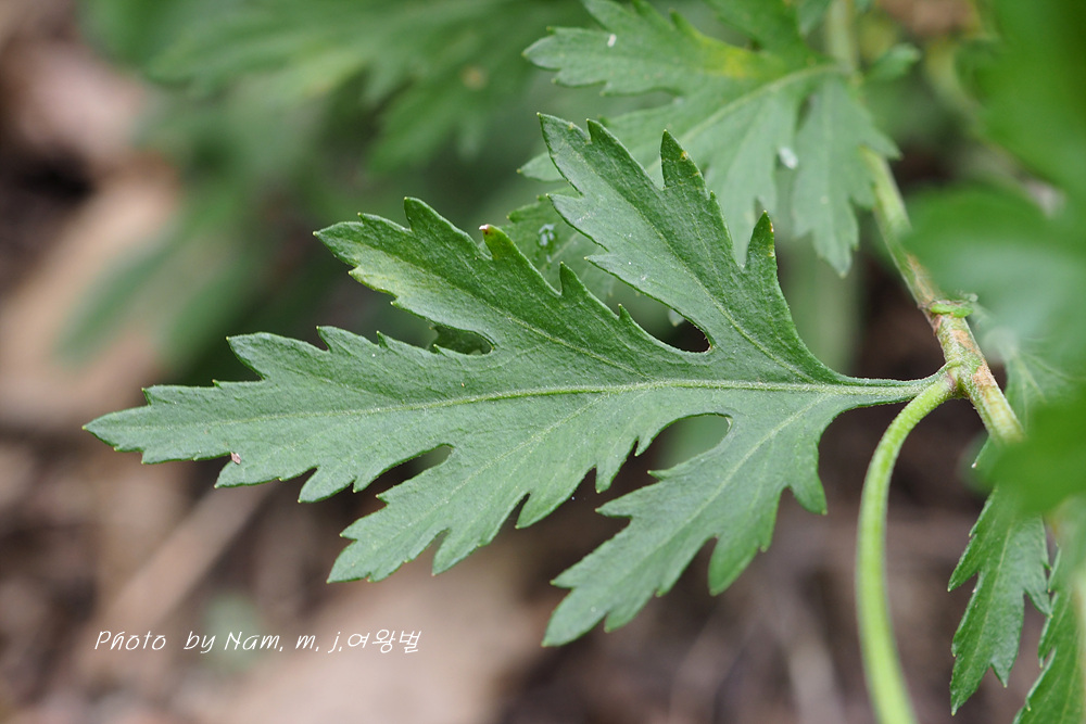 산국에 비하여 꽃이 더 크고 성글게 달리며 줄기에 분백색 털이 매우 약하다.