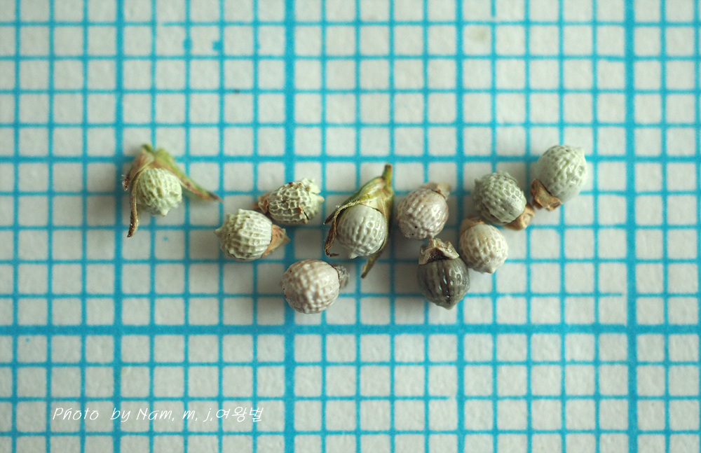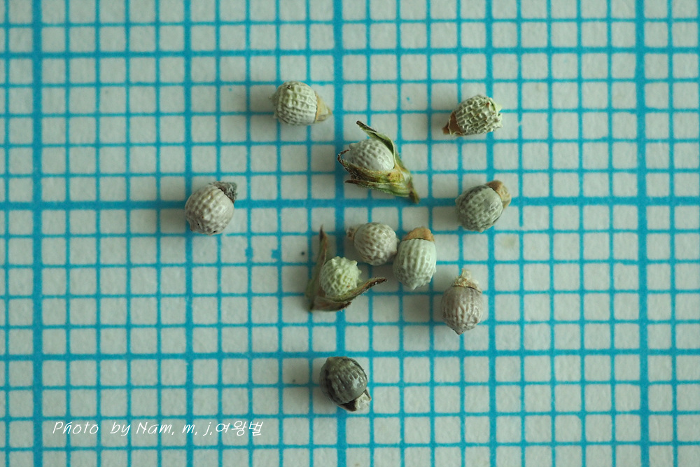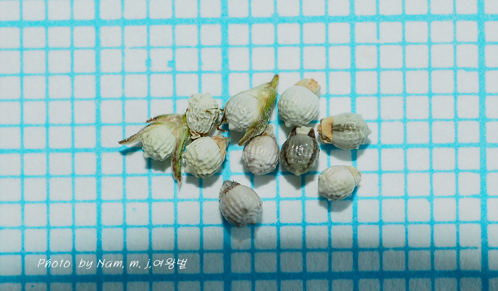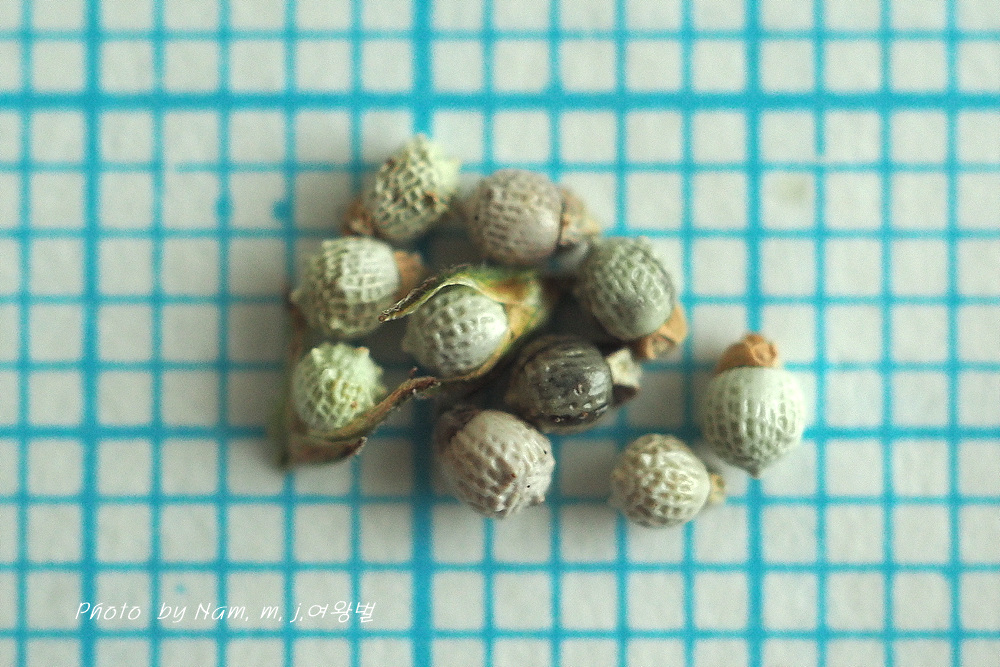 종자가 백색으로 거의 구형이며 지름 1.5mm 정도로 광택이 난다.