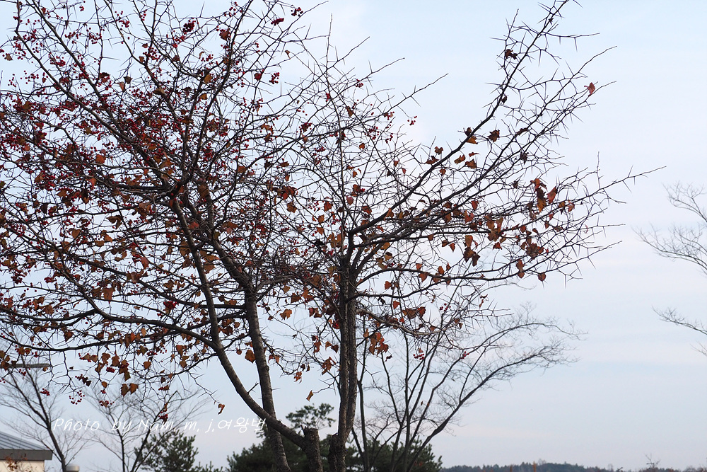 기본인 소나무와 함께 산사나무, 미국산사가 심겨져 있는데