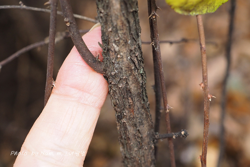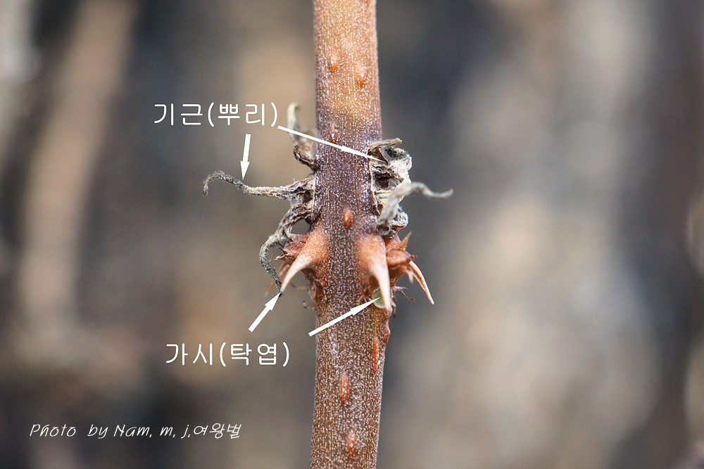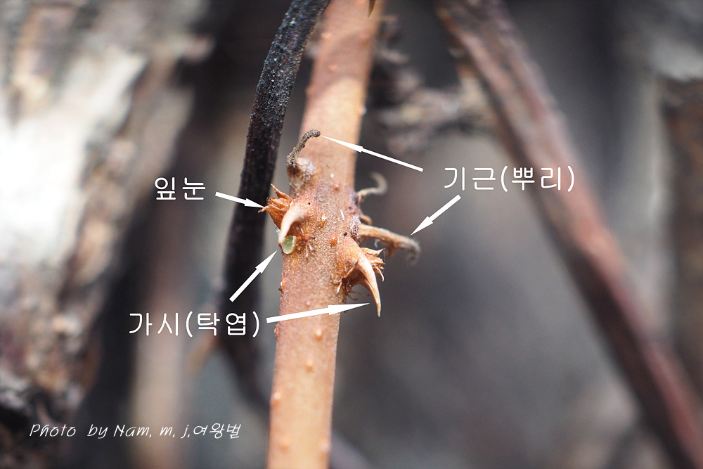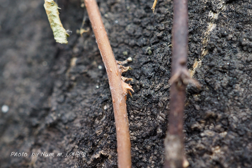 어린 덩굴이 기어오르는 모습을 보면 잎기부 가시 주변에서 뿌리가 발생하고 있는 걸 확인할 수 있었다.