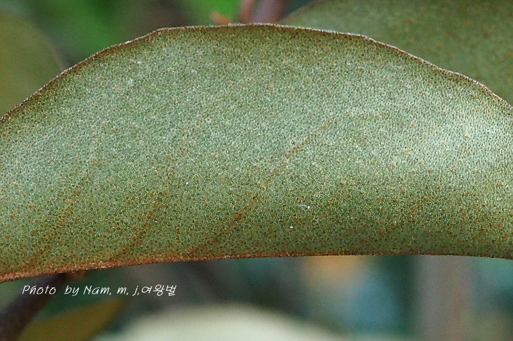 보리밥나무에 비하여 잎이 좁고 표면에 광택이 나며,잎 뒷면에 적갈색 인모가 밀생한다.