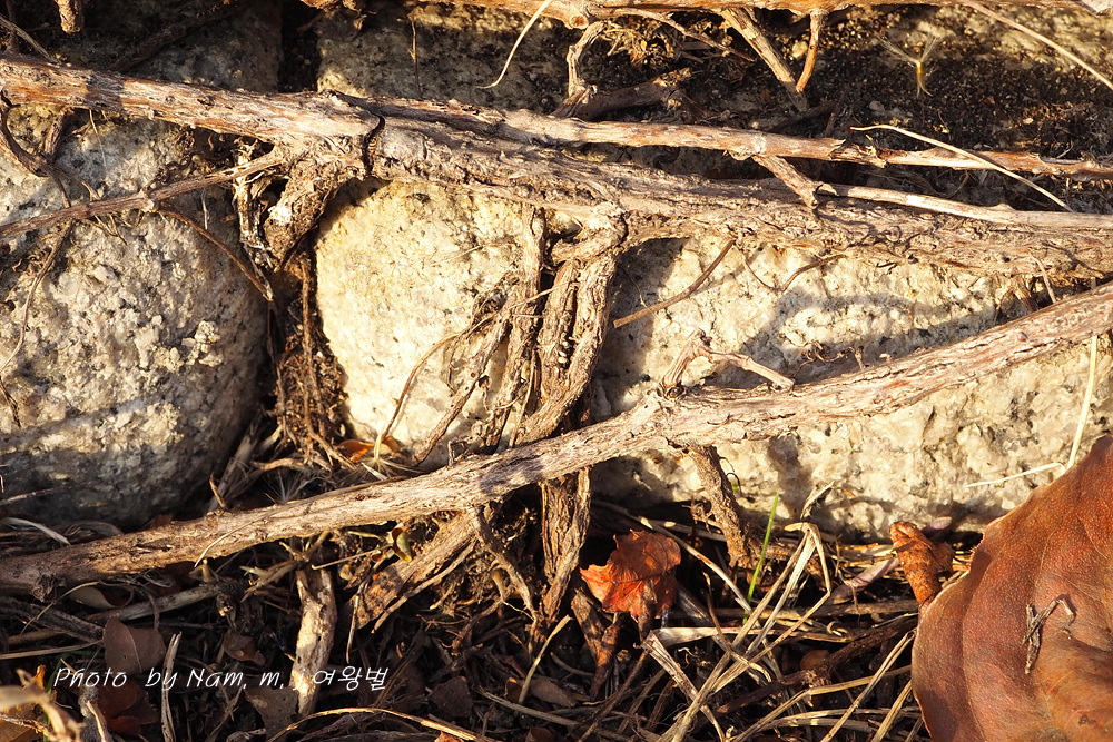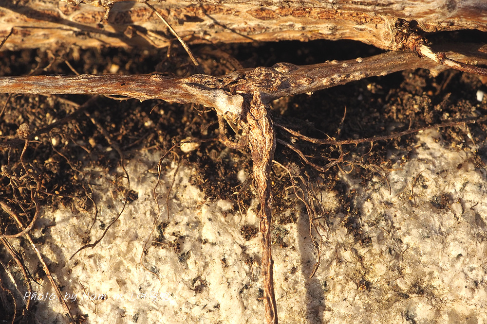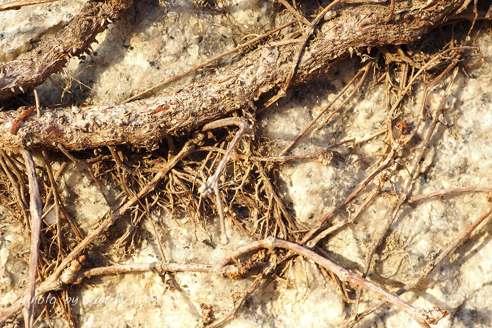 지면 가까운 곳에 많은 기근을 내어서 석벽에 줄기를 부착시키고 있었다.