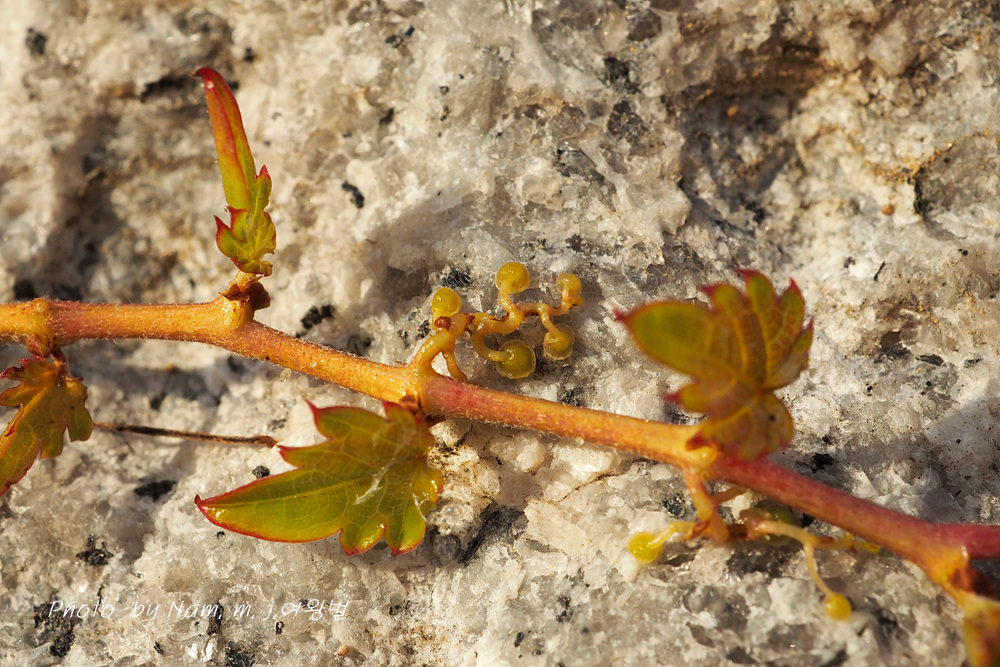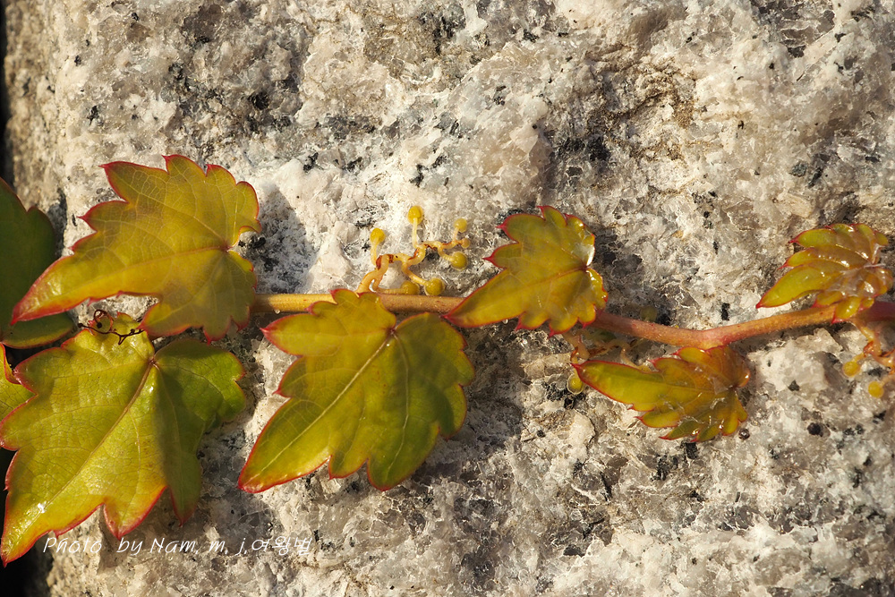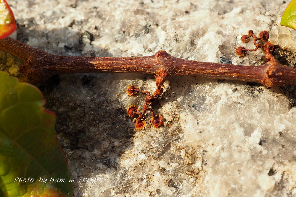 이 녀석은 줄기가 담벽이나 나무, 바위를 기어오르면서 잎과 마주나는 덩굴손이 뿌리처럼 변하여