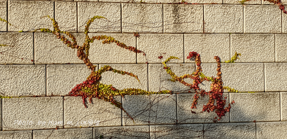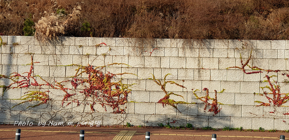 초겨울을 앞두고 있는 11월 하순으로 접어드는 도시의 벽에 담쟁이덩굴이 그림을 그리고 있었다.
