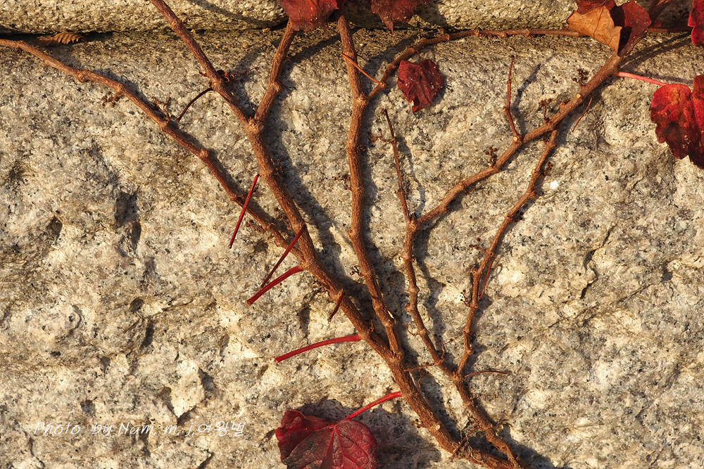 푼지나무의 기근을 촬영하면서 담쟁이덩굴의 흡반을 제대로 보고자 카메라를 들고 도청 주변 석벽을 찾았다.