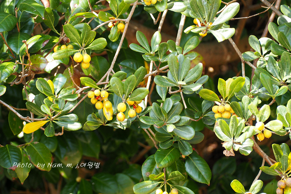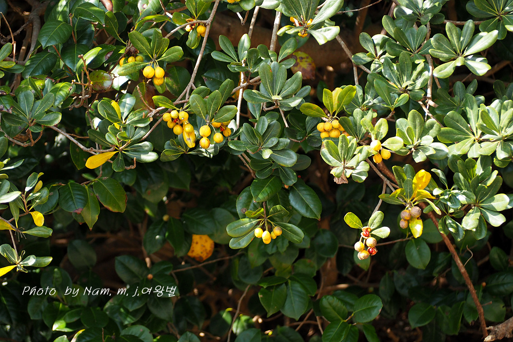 해안 산책로에서 만난 돈나무가 토양이 좋아서 아주 큰 열매를 만들었다