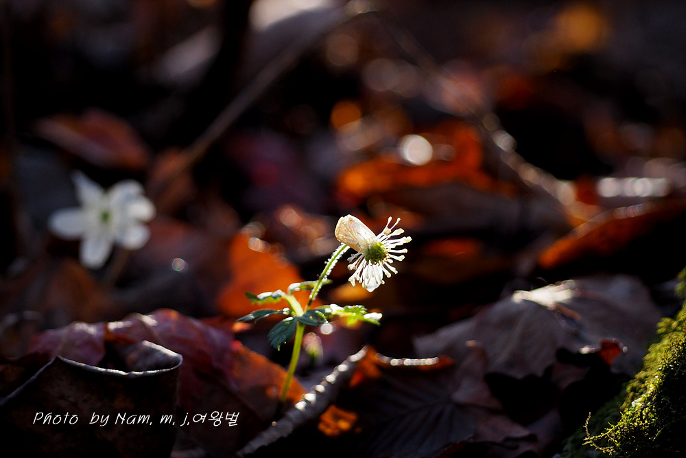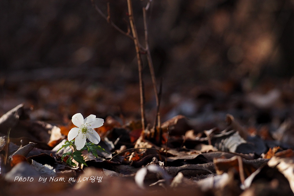 그 낙엽 사이에 들바람꽃이 제철처럼 피고 있다.