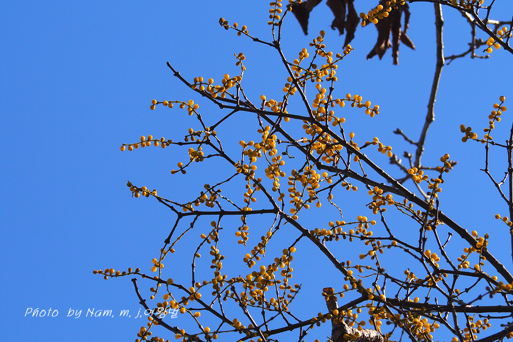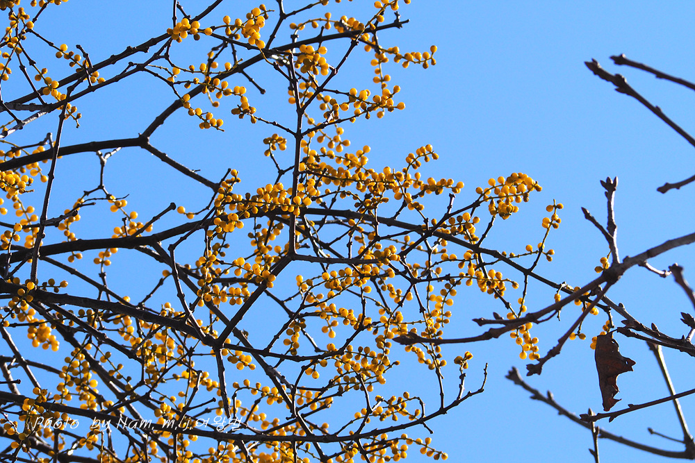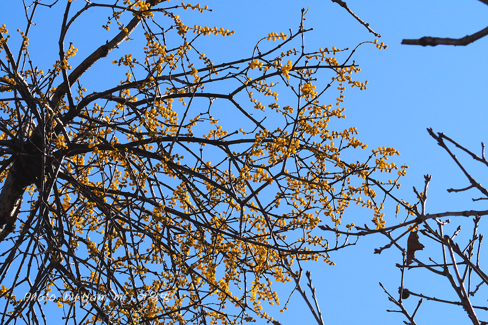 이 곳의 녀석은 그나마 150mm 렌즈로 담기에는 어느 정도 가능하여 노란 보석 같은 열매를 가까이 잡을 수가 있었다.