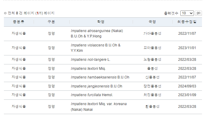 2024년 9월 현재 표준식물목록의 물봉선 속 국명이 이렇게 정리 되었다.