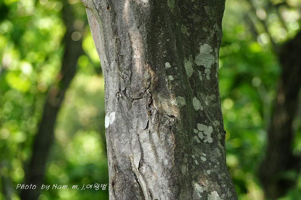 수피는 평활 근육질,나중에 서어나무보다 거칠게 갈라진다. 소지는 털이 있고 백색 피목 산재 | 수피는 평활 근육질 소지에 털이 많음 |