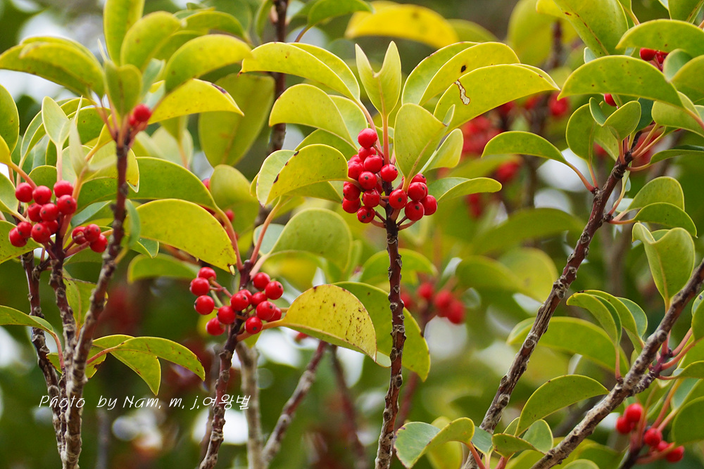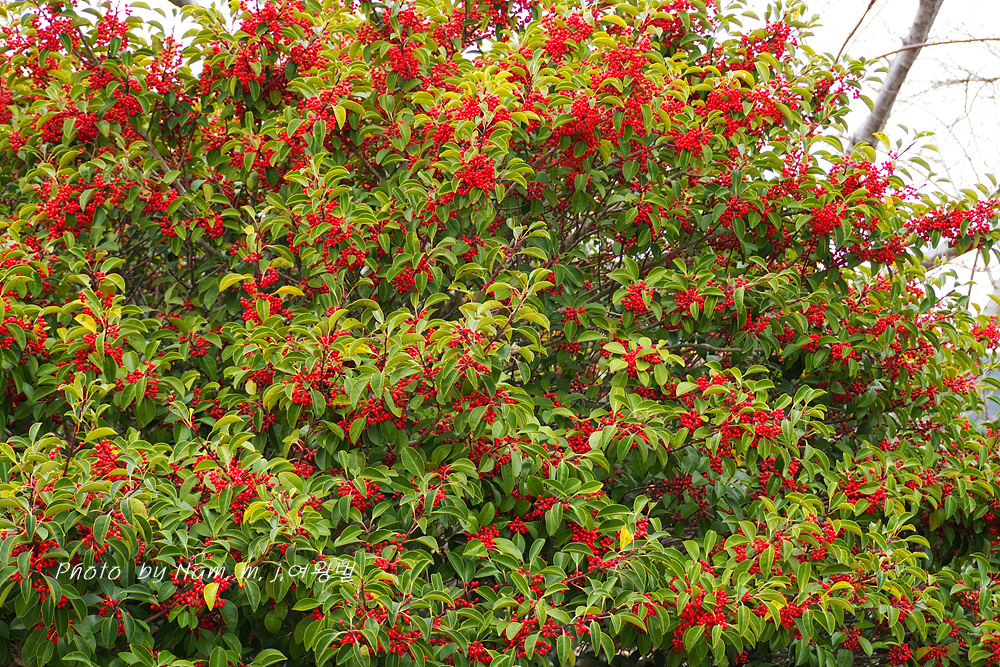 붉은 열매가 고와서 도로변이나 공원에 조경수로 많이 심는 상록수인데