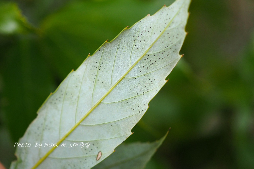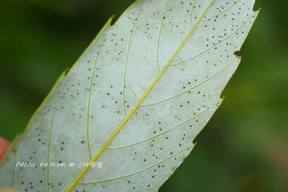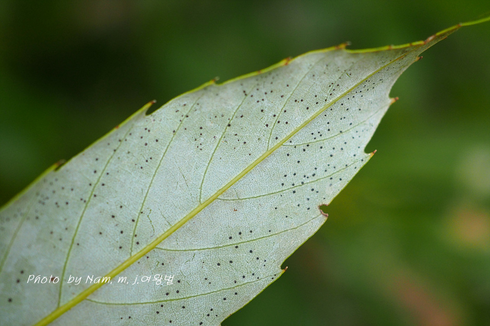 잎가장자리 톱니가 뾰족하고 잎 뒷면이 분백색을 띤다.