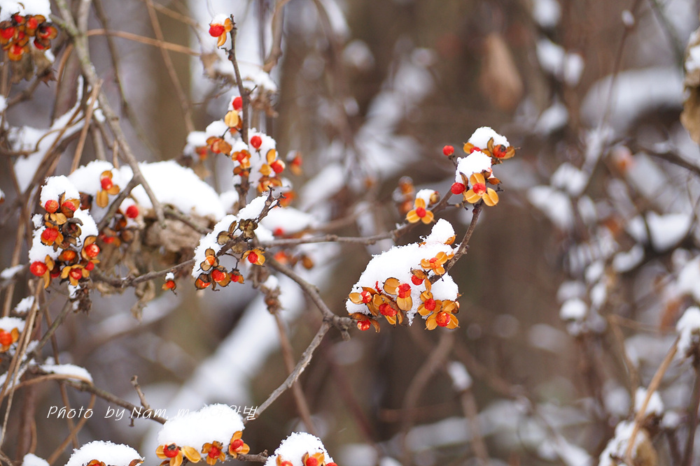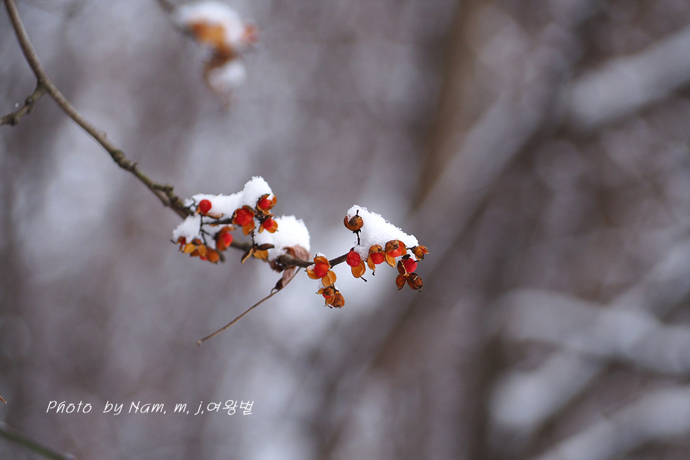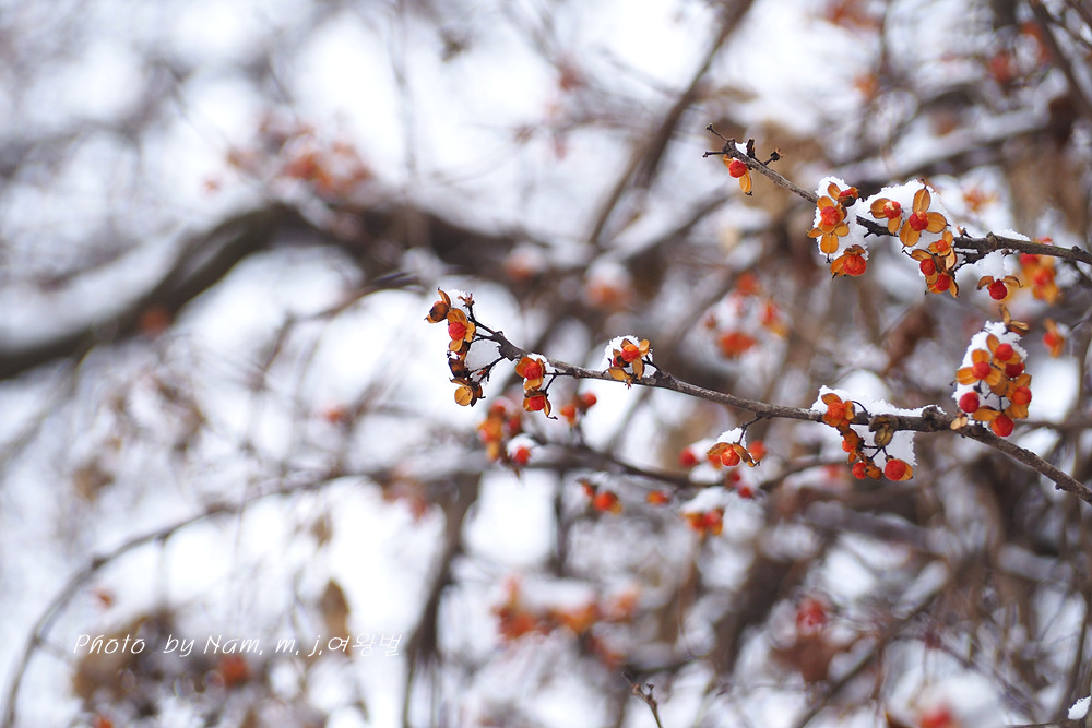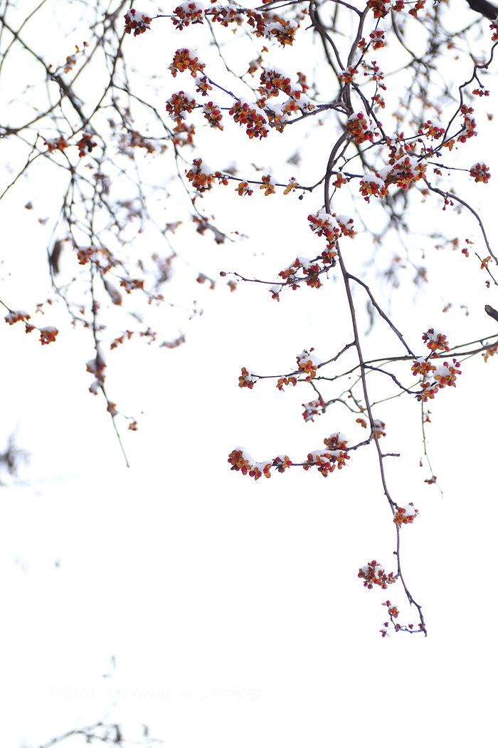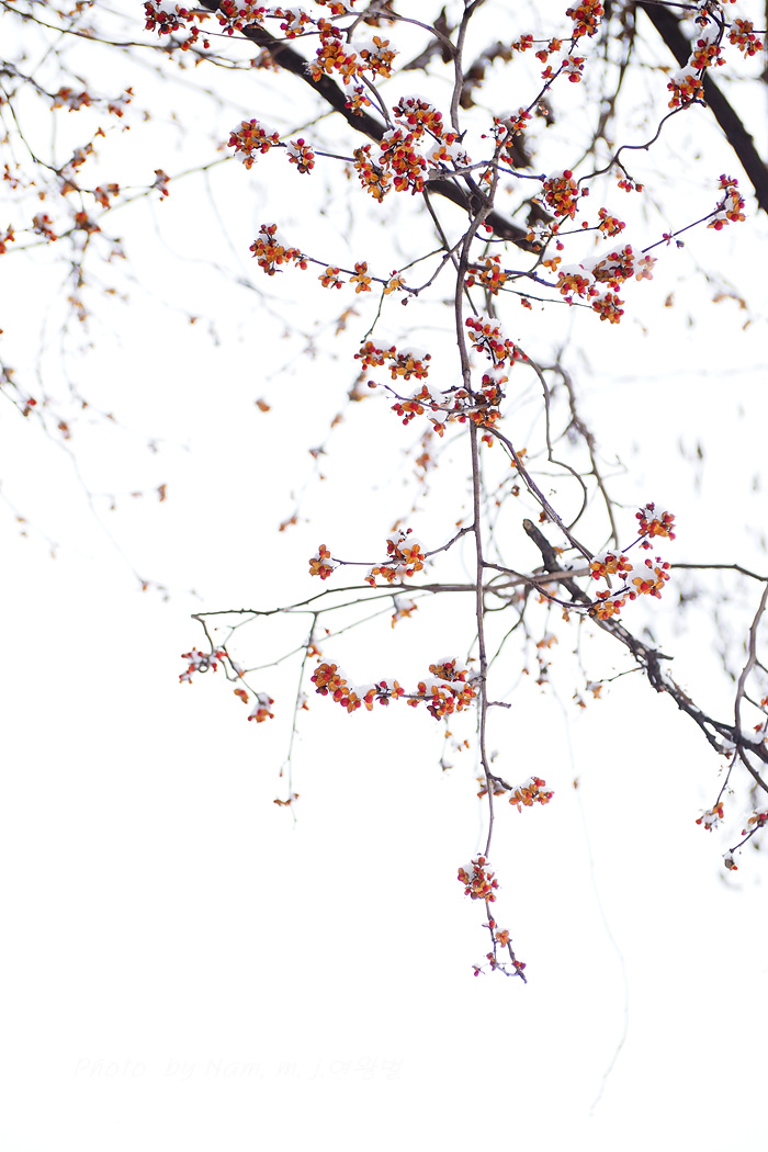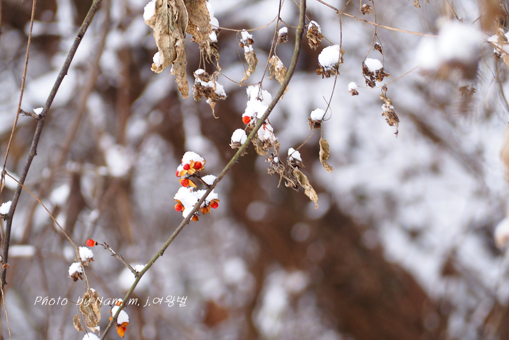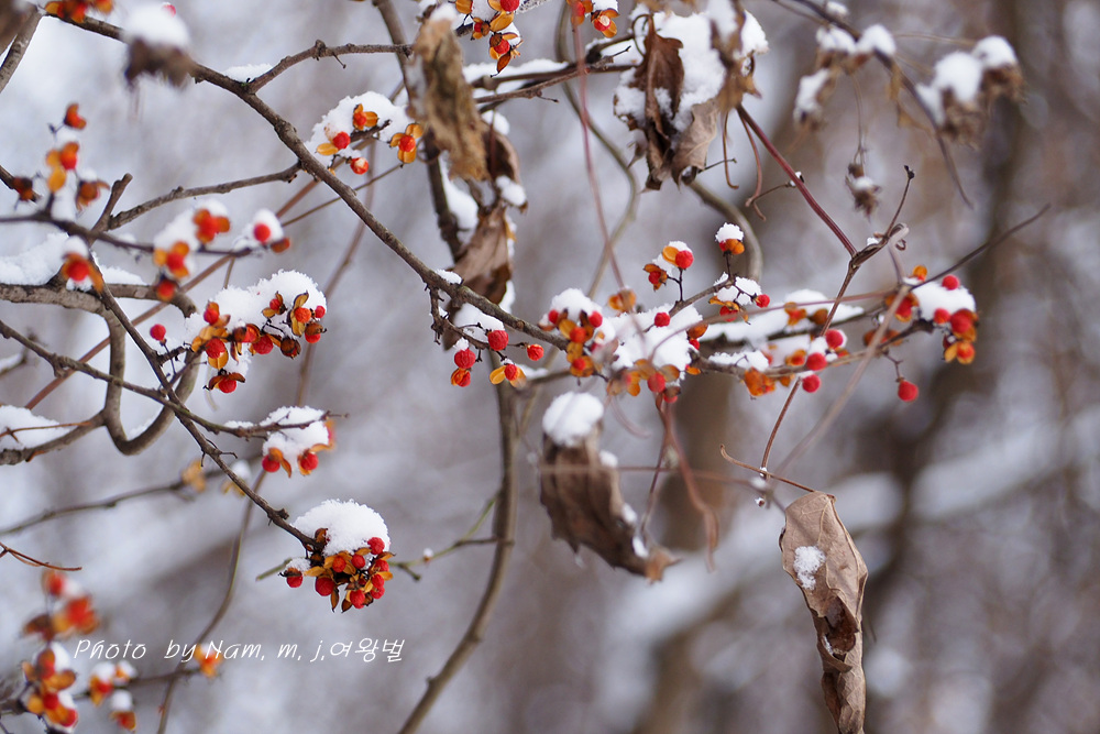 이 녀석 눈 덮인 붉은 열매를 담으려고 눈이 오길 기다렸더니