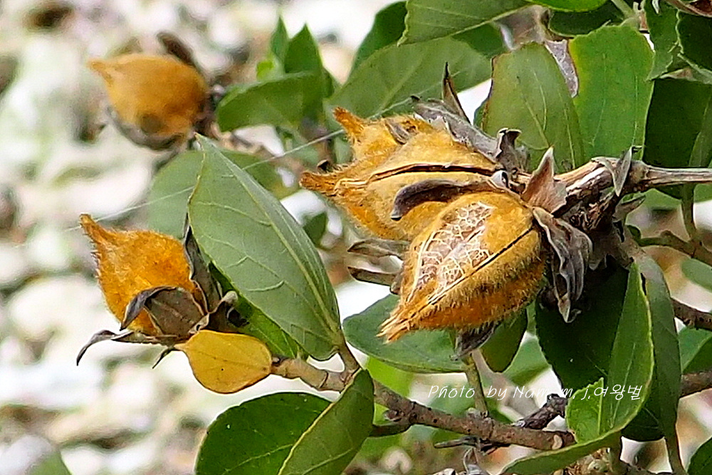 Hibiscus mutabilis L. 로 보인다는 댓글에 확인하니 제주도에서 담은 적이 있던 부용 열매가 맞다. ㅎ.