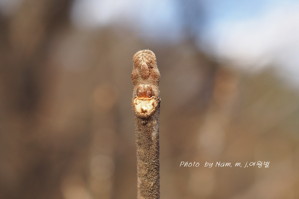 쉬나무 잔가지에는 부드러운 털이 많고 동아는 인편 없이 나출되어 있다.