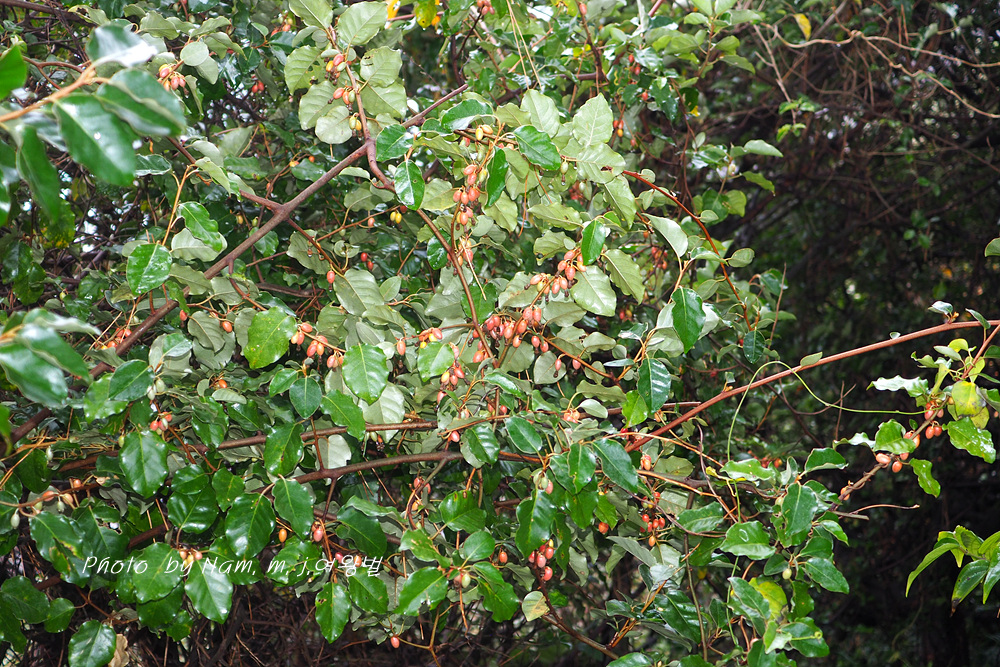 육지에서는 다 말라가고 있는 노박덩굴 열매가 제주도에서는 아직 껍질도 벌어지지 않고 있다.
